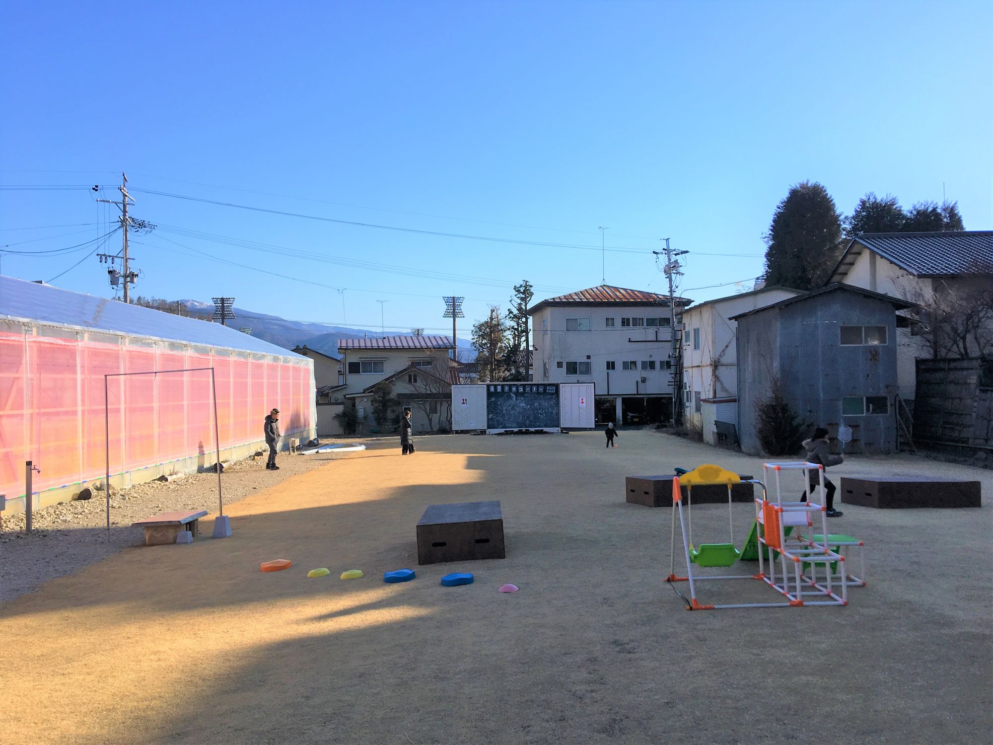 Seit Mai 2019 gibt es im Asama Onsen Stadtviertel den „waiwai hiroba“. „Waiwai“ bedeutet „lebhaft“ „lustig“ „kreischen“ und eben „Krach machen“. Auf den ersten Blick sieht man nur eine Wiese, 2 Container und ein Gewächshaus.