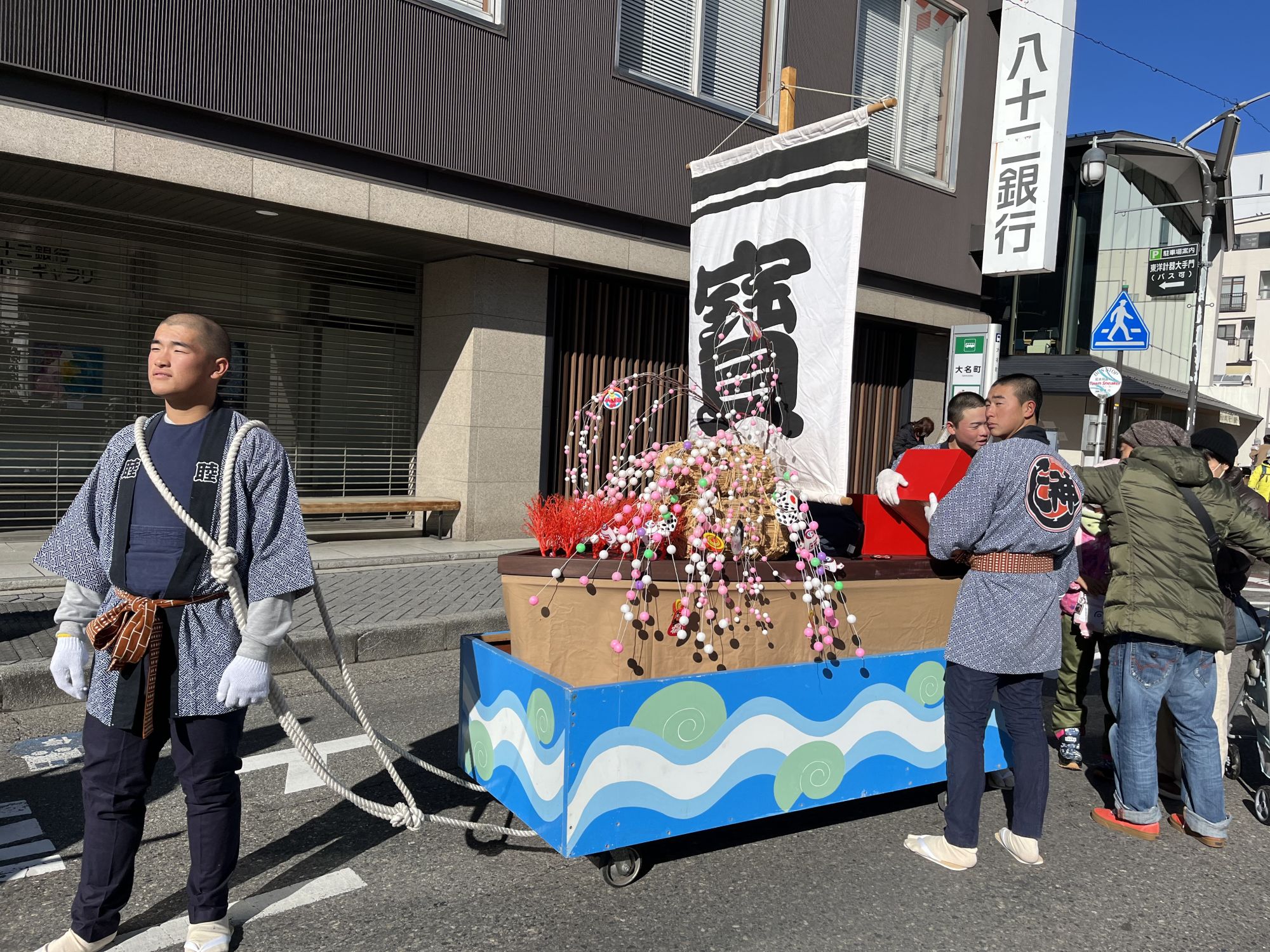 Un des grands événements de la journée est la parade des Sept Divinité de la Fortune. Les participants sont tous habillés de costumes traditionnels et on reconnaît facilement les sept divinités grâce à leurs attributs distinctifs. Ils paradent dans tout le centre ville au son des tambours taiko en distribuant des bonbons aux passants. On peut aussi apercevoir un grand fuku-omen, masque au visage joufflu, devenu le symbole des bonbons « Fuku-Ame » mentionnés précédemment.