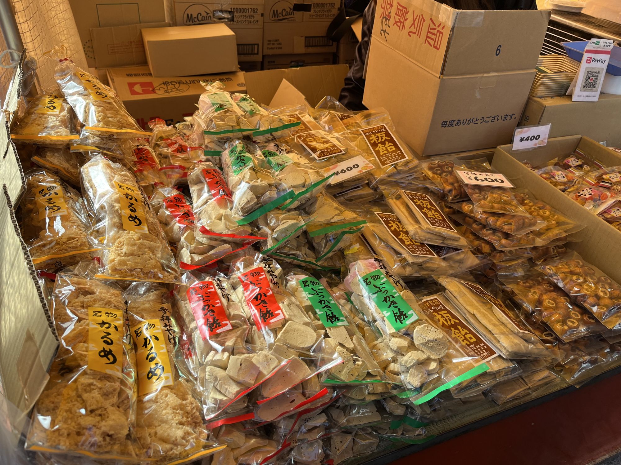 Dans la rue de Nakamachi se trouve l’ancien entrepôt Kurassic-kan, maintenant utilisé pour des expositions et divers événements. Pour l’occasion, l’établissement accueille une exposition de sucreries venues de tout le pays. On y retrouve les fameux Kintarō-ame de Tokyo mais aussi des produits d’Hokkaido à Okinawa. Tous sont disponibles à la vente, mais les plus populaires se sont vite trouvés en rupture de stock.