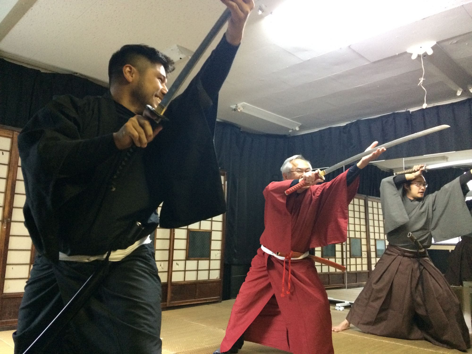 Après une introduction vous présentant les bases de cet art, vous aurez la possibilité de choisir vos tenues de samouraï qui consistent en un Yukata (Kimono léger), un Hakama (pantalon léger) et un Obi (ceinture). Le personnel vous habillera de manière à suivre une formation de samouraï le plus fidèlement possible. Après avoir enfilé votre tenue vient le moment de choisir votre épée! Pour des raisons de sécurité évidentes, toutes les épées proposées sont en bambous, elles sont donc légères et solides!