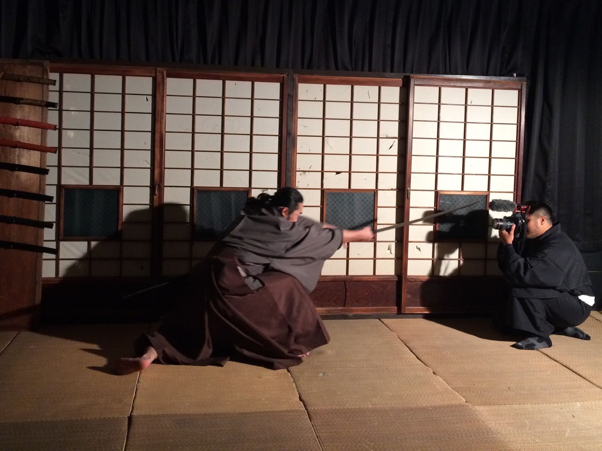 Une fois que vous serez habitué aux mouvement de bases, vous pourrez vous essayer à un combat face à de véritables opposants! Une séance vidéo est également proposée pendant laquelle vous serez filmé en plein action! La décoration et l’atmosphère vous donneront l’impression de vous retrouver sur un véritable plateau de cinéma. Devenez la star de votre propre histoire de samouraï!