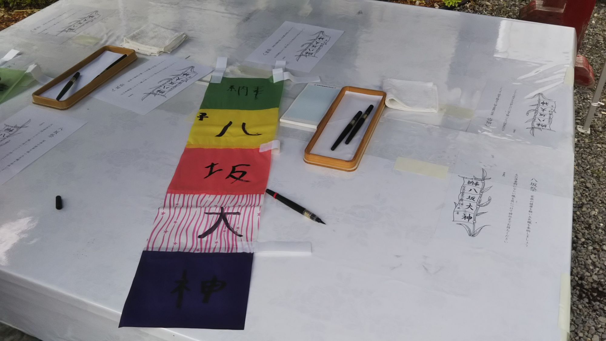 Le 14 Juillet est synonyme de fête nationale pour les français mais, pour les habitants de Matsumoto, c’est le jour de la célébration de Yasaka-sama (le Dieu Yasaka) au sanctuaire de Fukashi. C’est l’occasion de prier pour le bonheur et la santé des enfants en offrant des bannières faites de roseau et de papier, sur laquelle chaque enfant écrit avec un pinceau calligraphique « Au puissant Dieu Yasaka » avec leur nom et leur âge. Une tradition ancienne qui perdure et à laquelle vous pouvez participer à Matsumoto !