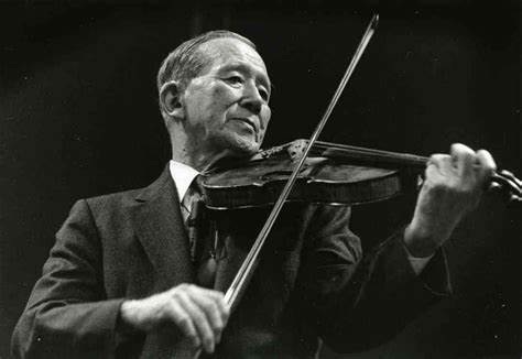 Shinichi Suzuki est né en 1898 à Nagoya et en tant que fils d’un luthier dirigeant une fabrique de violons, il se familiarise très jeune au violon en tant qu’objet. Ce n’est cependant qu’à l’âge de 17 ans qu’il commencera en autodidacte l’apprentissage de cet instrument après avoir ecouté l’Ave Maria de Franz Schubert.