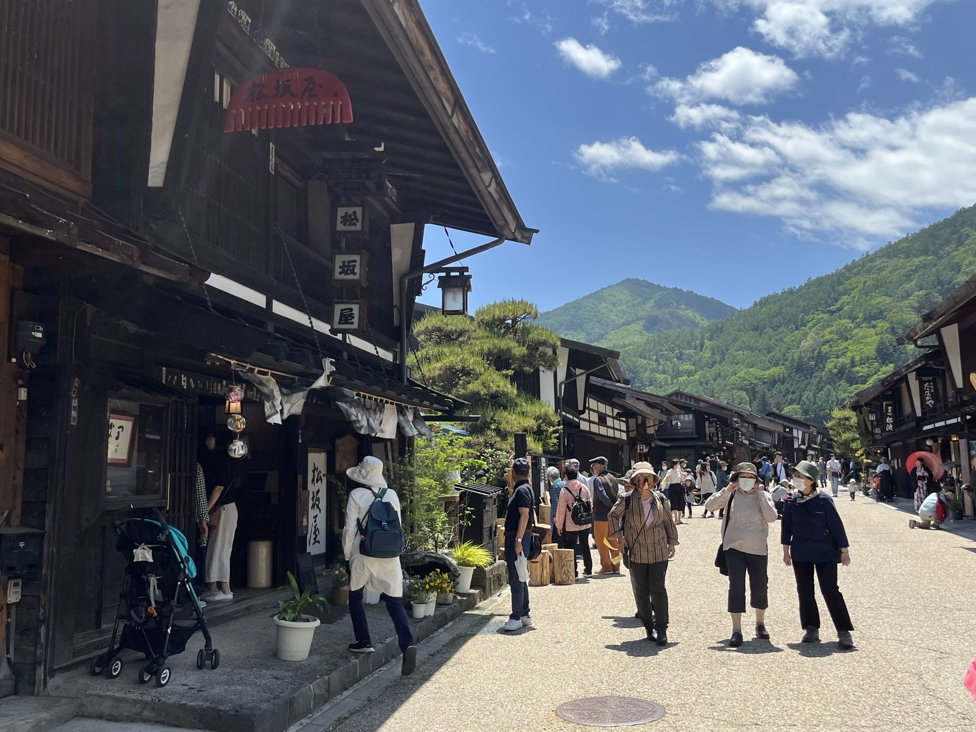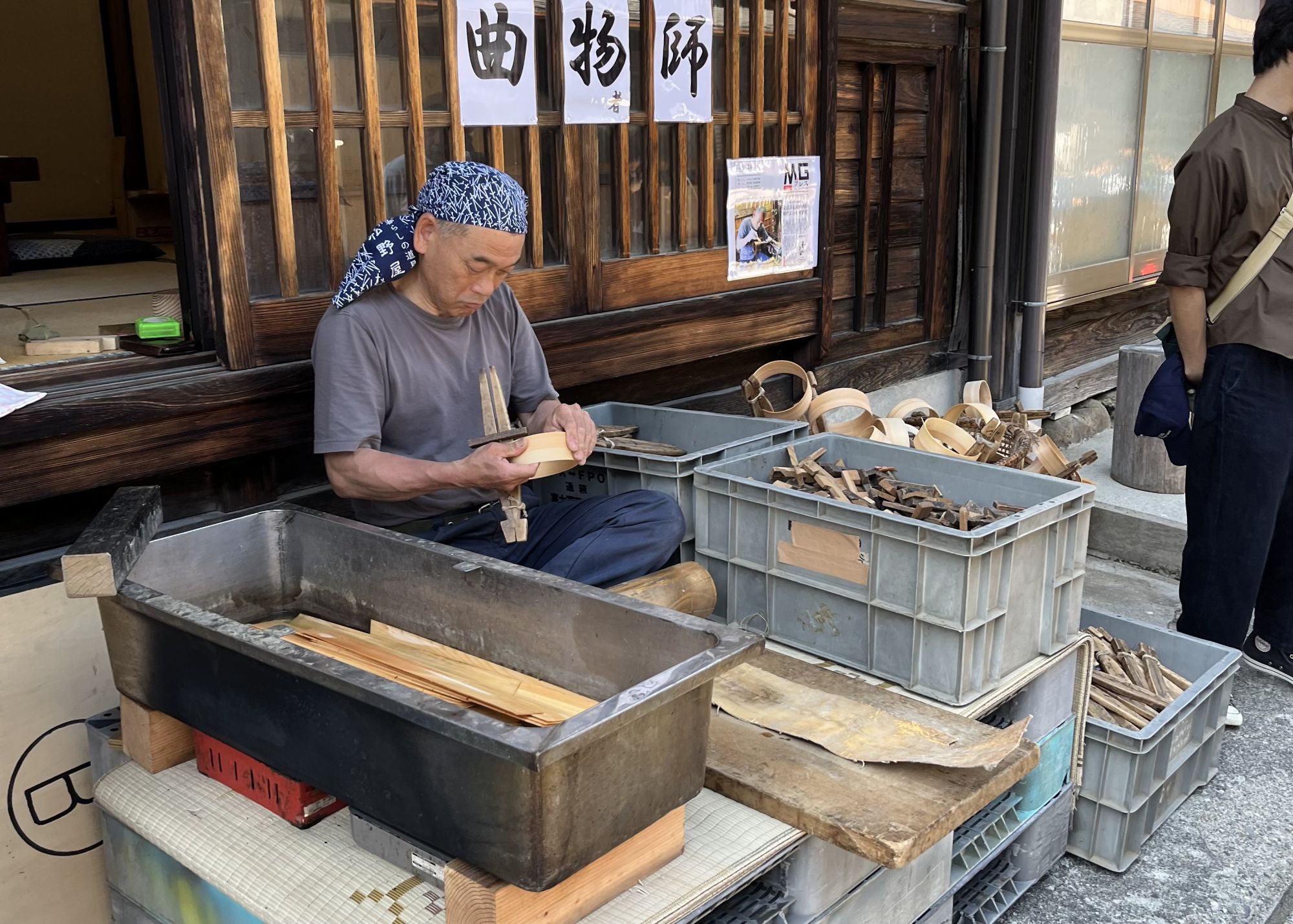 Dans le village de Narai-juku aussi, les boutiques de laques sont mises en avant et on peut même observer le travail de certain artisans. Le dernier artisan de magemono (objet artisanaux en bois cintré) du village nous a expliqué les caractéristiques du bois de cyprès hinoki, très malléable et donc parfaitement adapté à l’art du magemono qui consiste à tordre de fines planches de bois pour en faire des tasses ou des boites qui sont ensuite laquées.