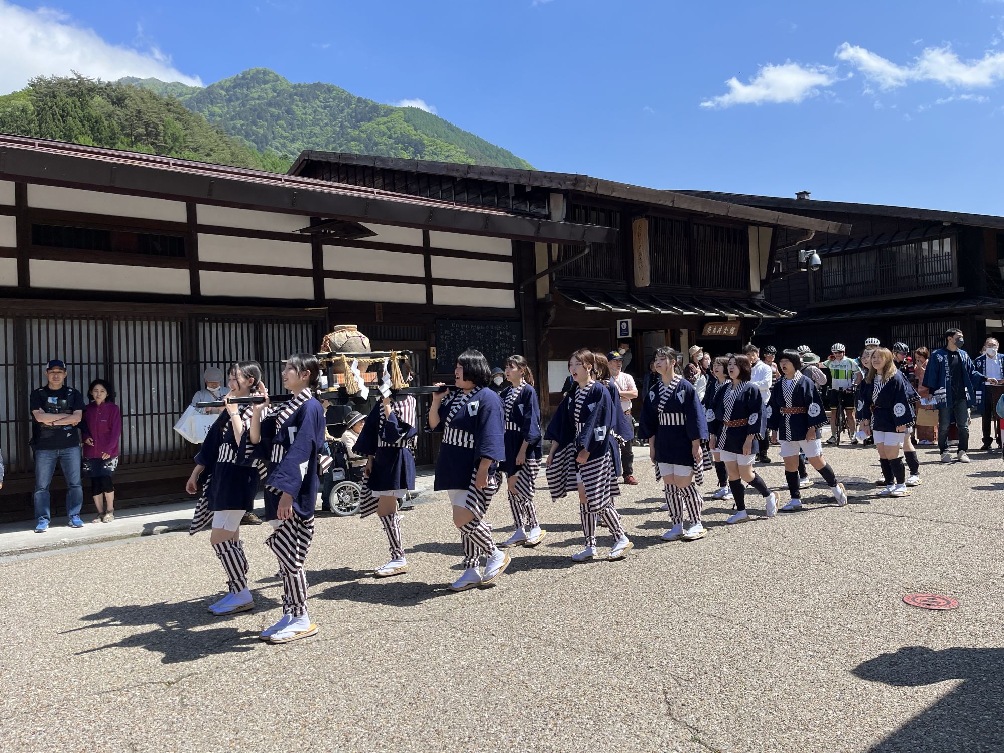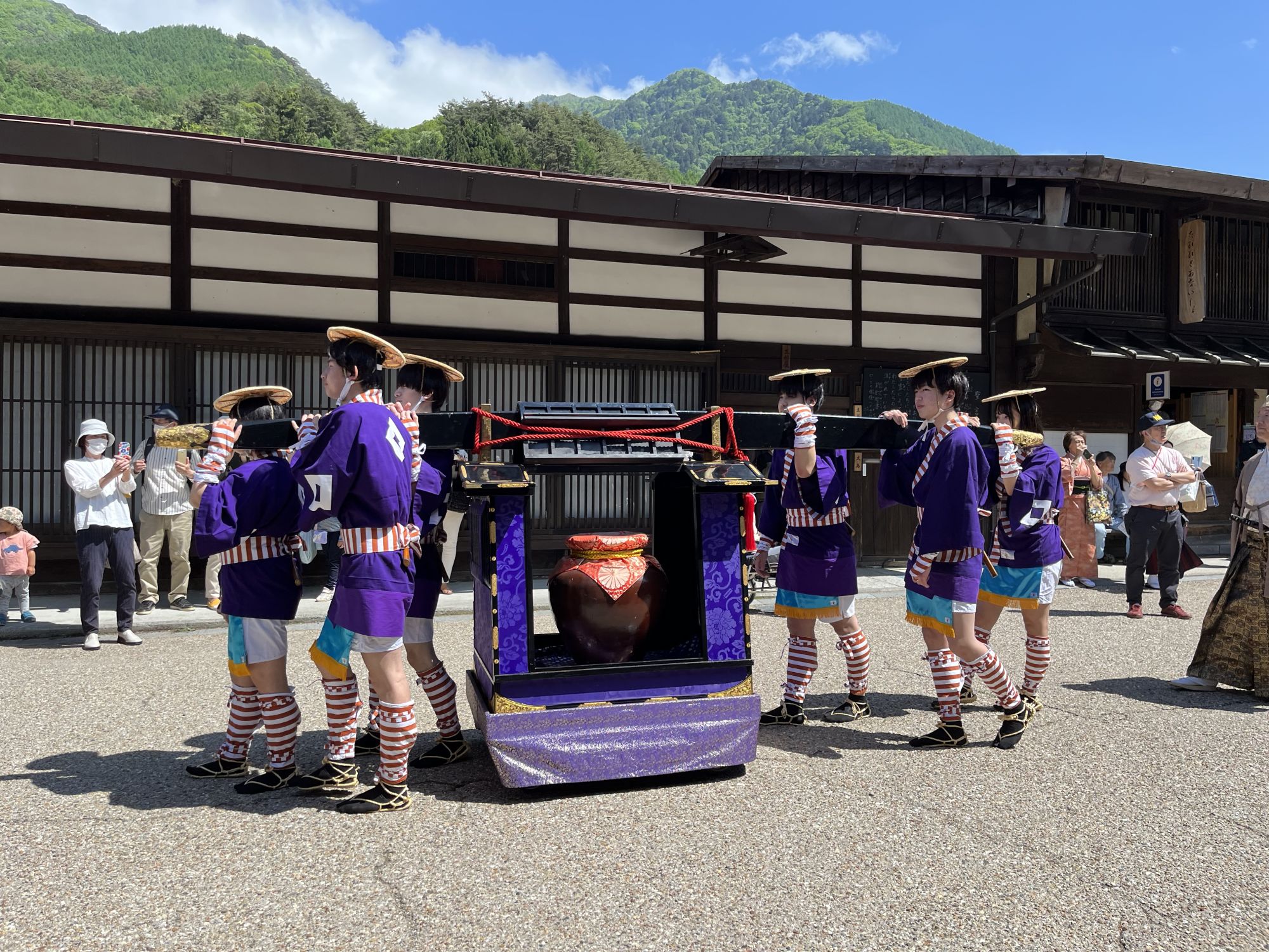 Le samedi 3 juin, le village devient la scène d’un événement datant de l’époque d’Edo. La parade de l’Ochatsubo-dochu représente la procession qui partait de la ville de Kyoto pour présenter au Shogun Tokugawa résidant à Edo, la nouvelle récolte de thé de la ville d’Uji. Les porteurs sont habillés en costume d’époque et transportent de grands récipients en céramiques contenant le thé aux sons des « Shita ni » incitants les passants à se prosterner au passage de la procession.