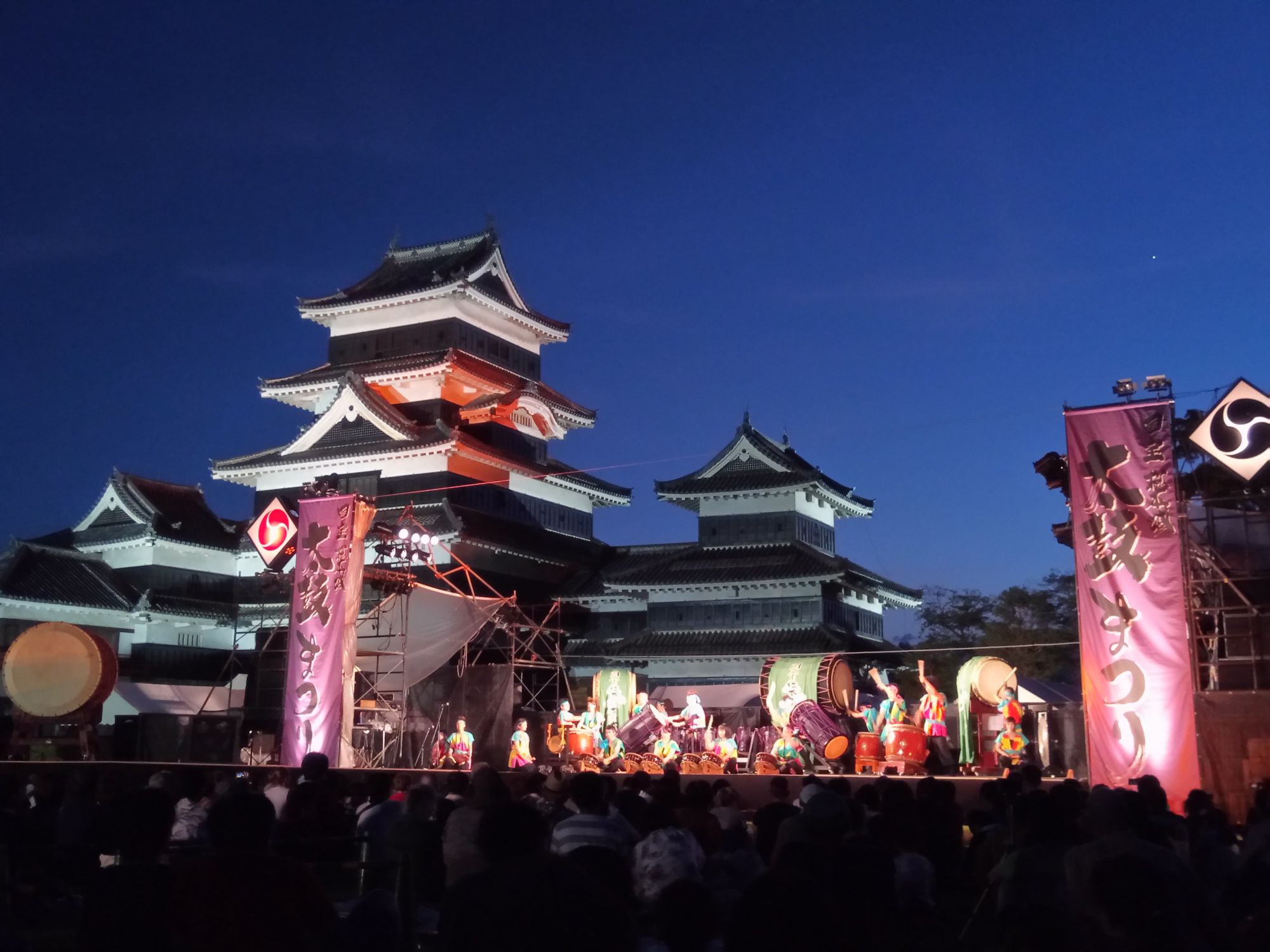 Lors de ce Festival de Taiko, vous pourrez admirer la prestation de nombreux groupes de Taiko participant à cet événement, et qui souhaitent faire partager leurs passions au plus grand nombre. À cet effet, la ville de Matsumoto propose un cadre idéal pour profiter pleinement de ce spectacle : le Château de Matsumoto.