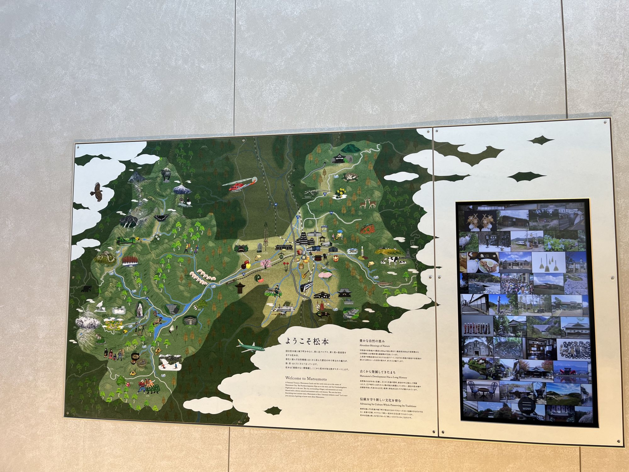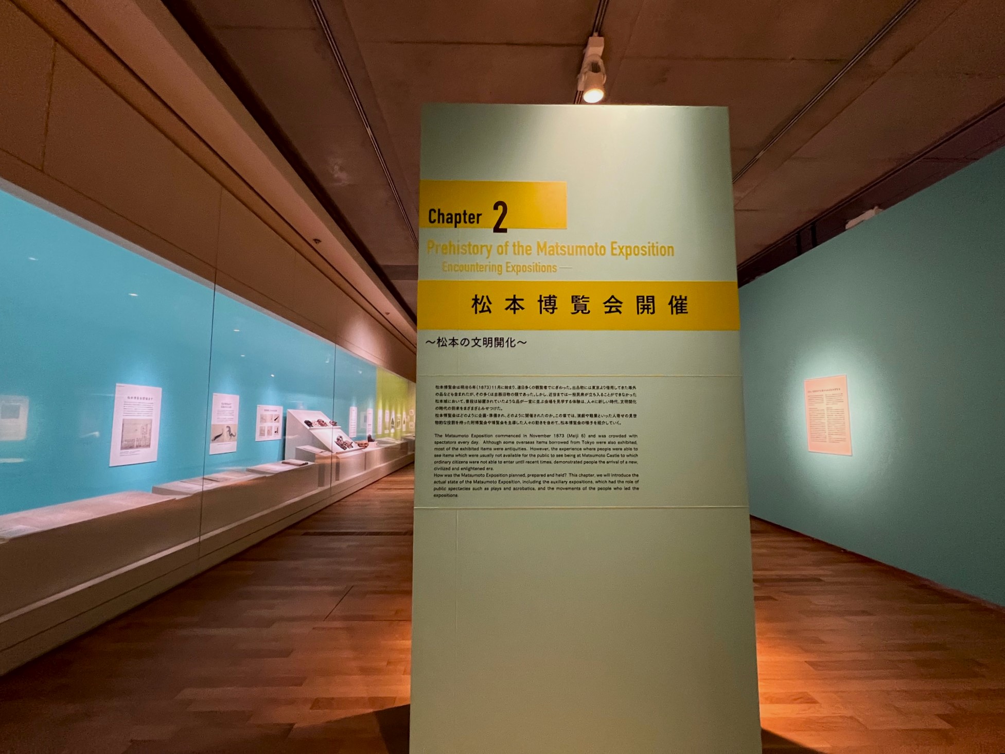 Le deuxième et le troisième étages sont réservés aux expositions. Le deuxième étage propose des expositions temporaires et la toute première exposition « EXPO MATSUMOTO » a pour thème la premiere grande exposition qui a eu lieu a l’ère Meiji au chateau de Matsumoto. Si les grandes lignes de l’histoire sont proposées en anglais, l’exposition manque toutefois d’explications plus détaillées en anglais.