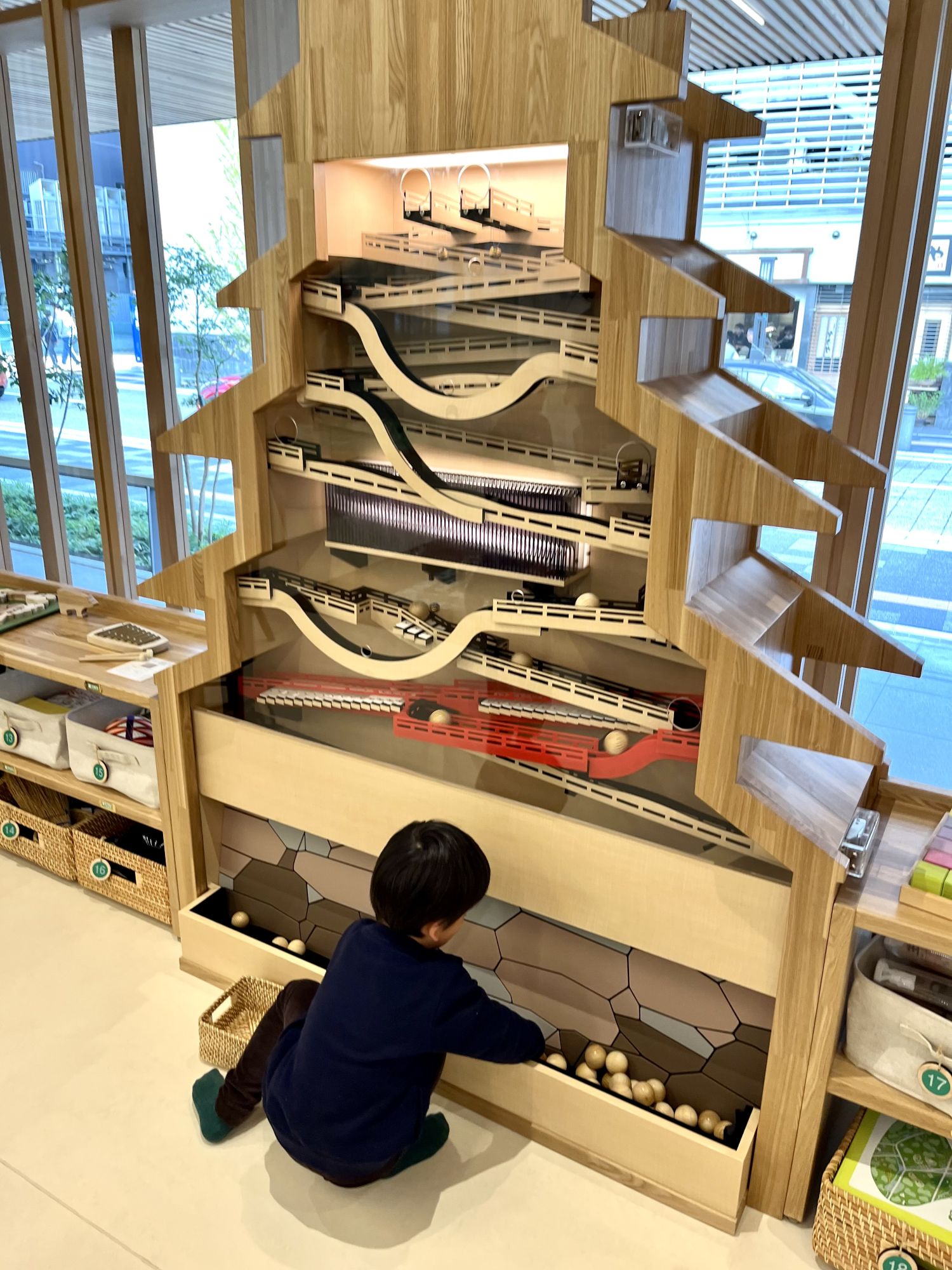 Pour cela, le rez-de-chaussée du musée propose un auditorium qu’il est possible de réserver pour organiser des séminaires, conferences ou une salle de reunion qui peut accueillir des ateliers. Une grande aire de jeu, « Asobiba », gratuite et ouverte pour tous les enfants jusqu’à le fin de la primaire. On y retrouve un espace cuisine mais avec de quoi préparer des sobas, une piscine de boules en bois et de balles temari, les traditionnelles balles tissées de la ville, un grand plateau représentant toute la région de Matsumoto avec des petites maisons, des véhicules à placer à son gré. Si vous vous baladez en famille, cet espace peut vous offrir une pause au cœur de vos visites tout en offrant à vos enfants une approche ludique de la ville et de sa culture.