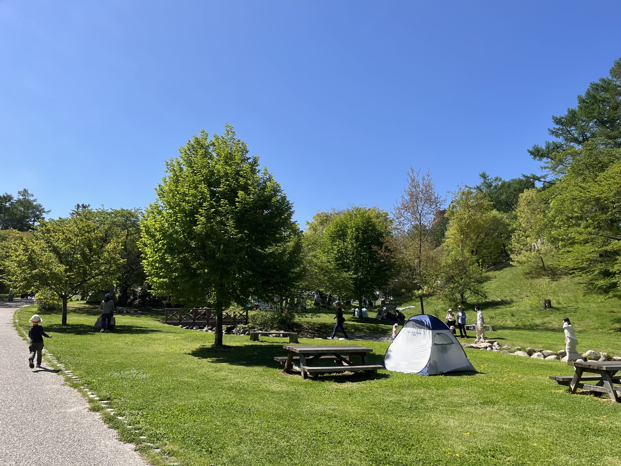 Nombreux visiteurs viennent avec leur petite tente ou leur tapis, afin de passer la journée dans le parc et de pique-niquer sur place.
