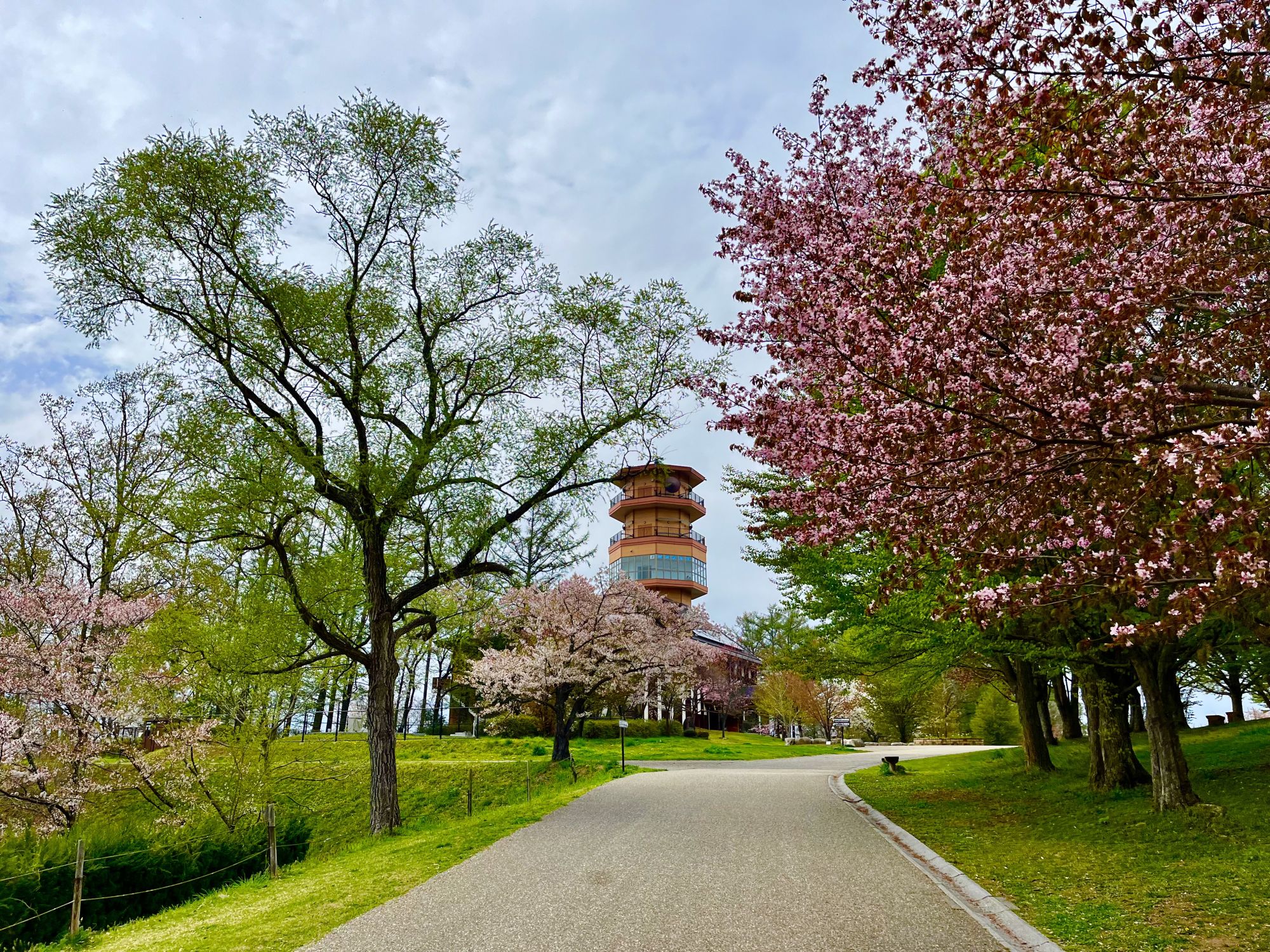 Il est agréable de juste s’y promener également, notamment en passant sous le tunnel de fleurs qui bordent la grande allée dans la partie haute du parc. Au bout de cette allée, vous pouvez aussi monter en haut de la tour d’observation qui donne vue sur toute la région de Matsumoto. On aperçoit même la colline de Kobo-yama qui forme un dôme de cerisier en fleur, autre spot réputé en cette saison.