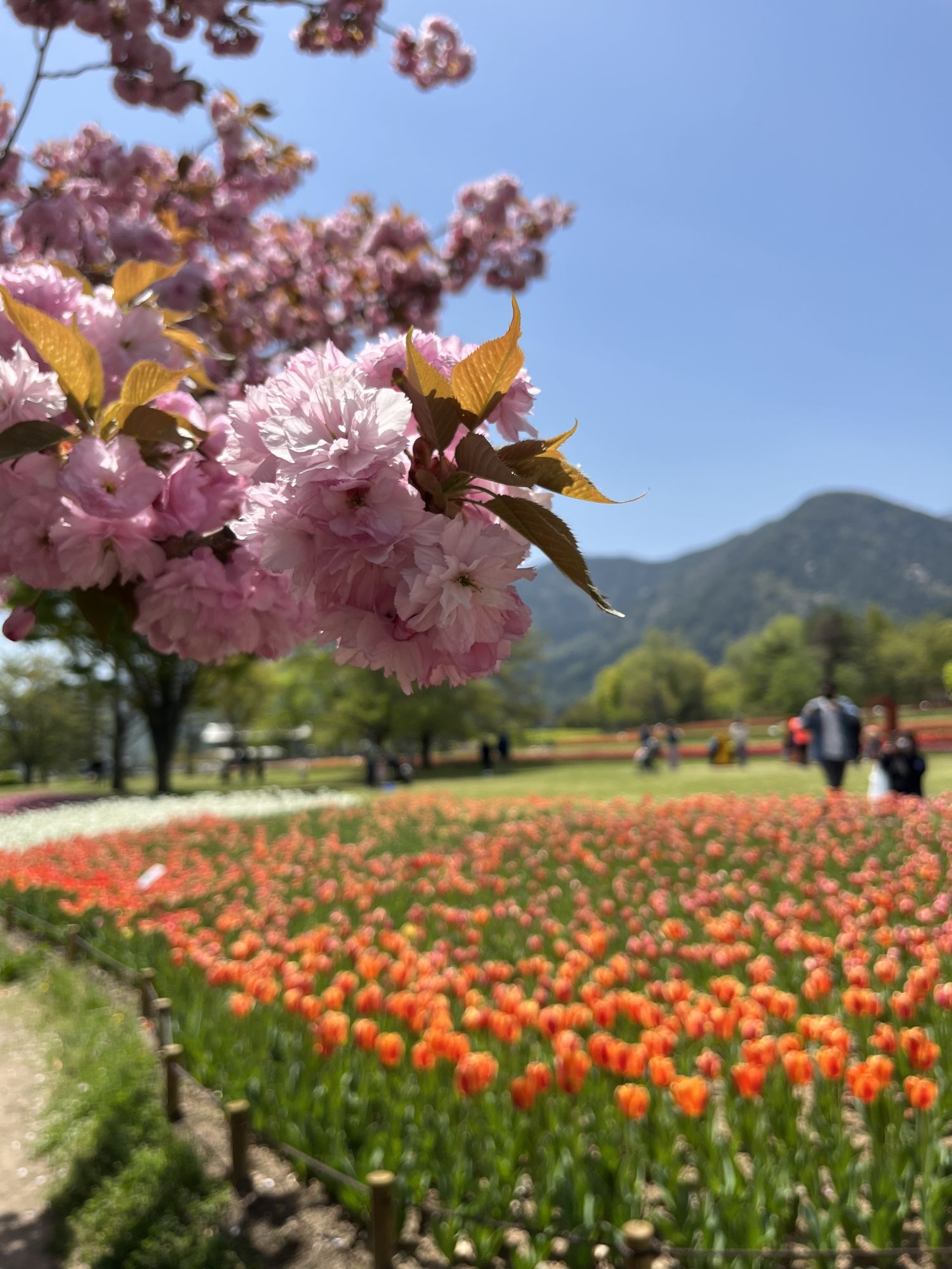 La vue d’ensemble du parc, toujours entouré de montagne est a couper le souffle. N’hésitez pas à vous éloigner un peu des sentiers du jardin des tulipes pour profiter de paysages plus paisibles et typiques des Alpes japonaises.