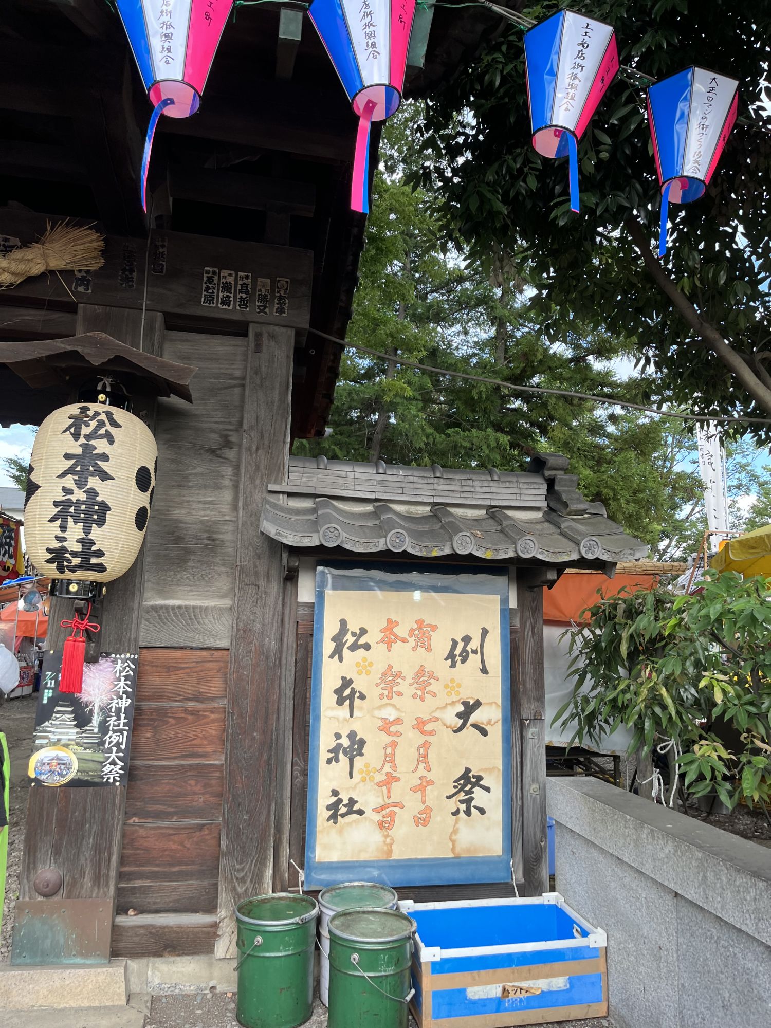 Le sanctuaire de Matsumoto est connu pour son « Kokomo no matsuri », le festival des enfants. On n’y trouvera donc pas de boissons alcoolisées mais des stands de sodas par exemples. Il y a également de quoi tenter sa chance pour remporter quelques jouets lumineux ou meme des poissons rouges.