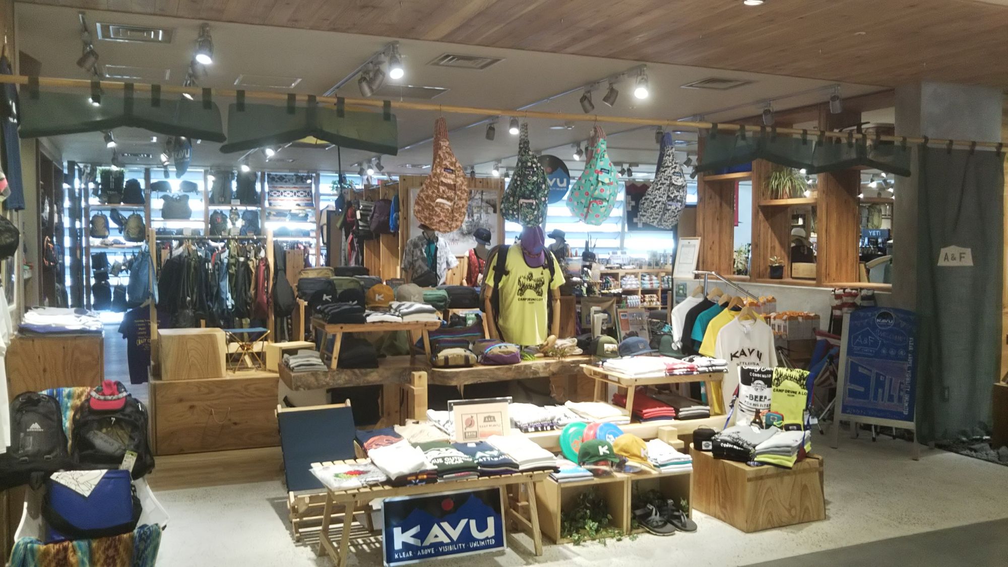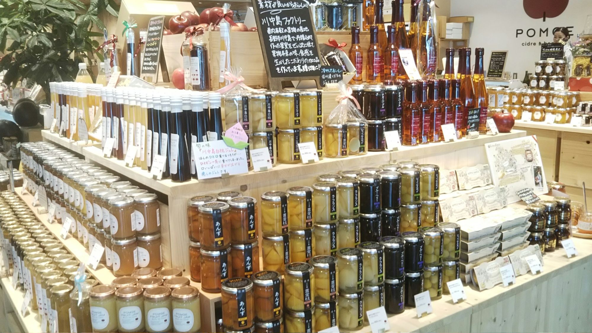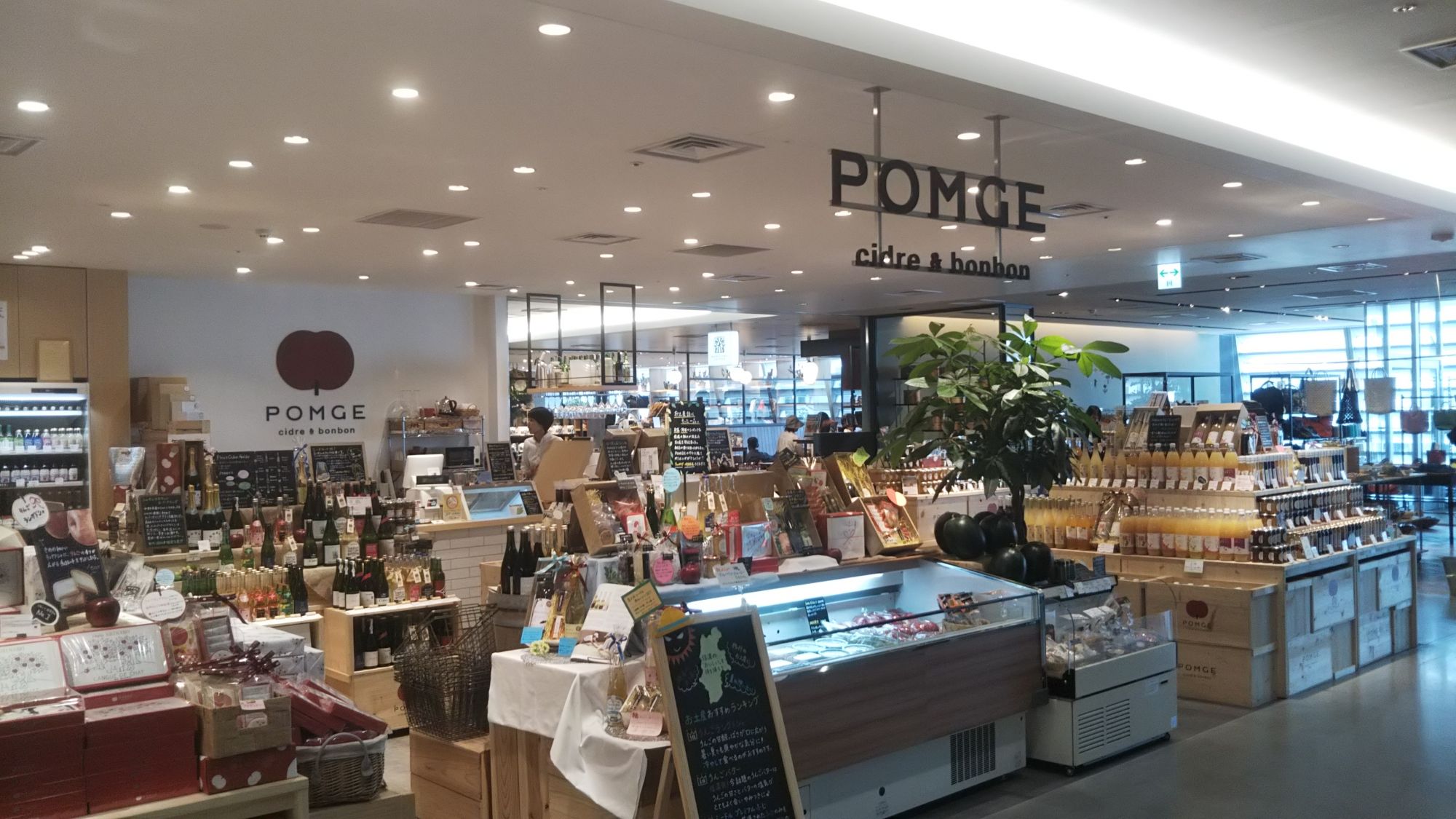 Au 1er étage (2F) se trouve plusieurs magasins allant des magasins de vêtements et d’équipements de montagne (A&F Country et The North Face), au magasin d’accessoires divers et articles pour la maison et la cuisine (Markt and Markt+) en passant par un magasin spécialisé dans le cidre, fabriqué à partir des fameuses pommes de la région, mais proposant également divers produits locaux à base de pommes locales (Pomge).