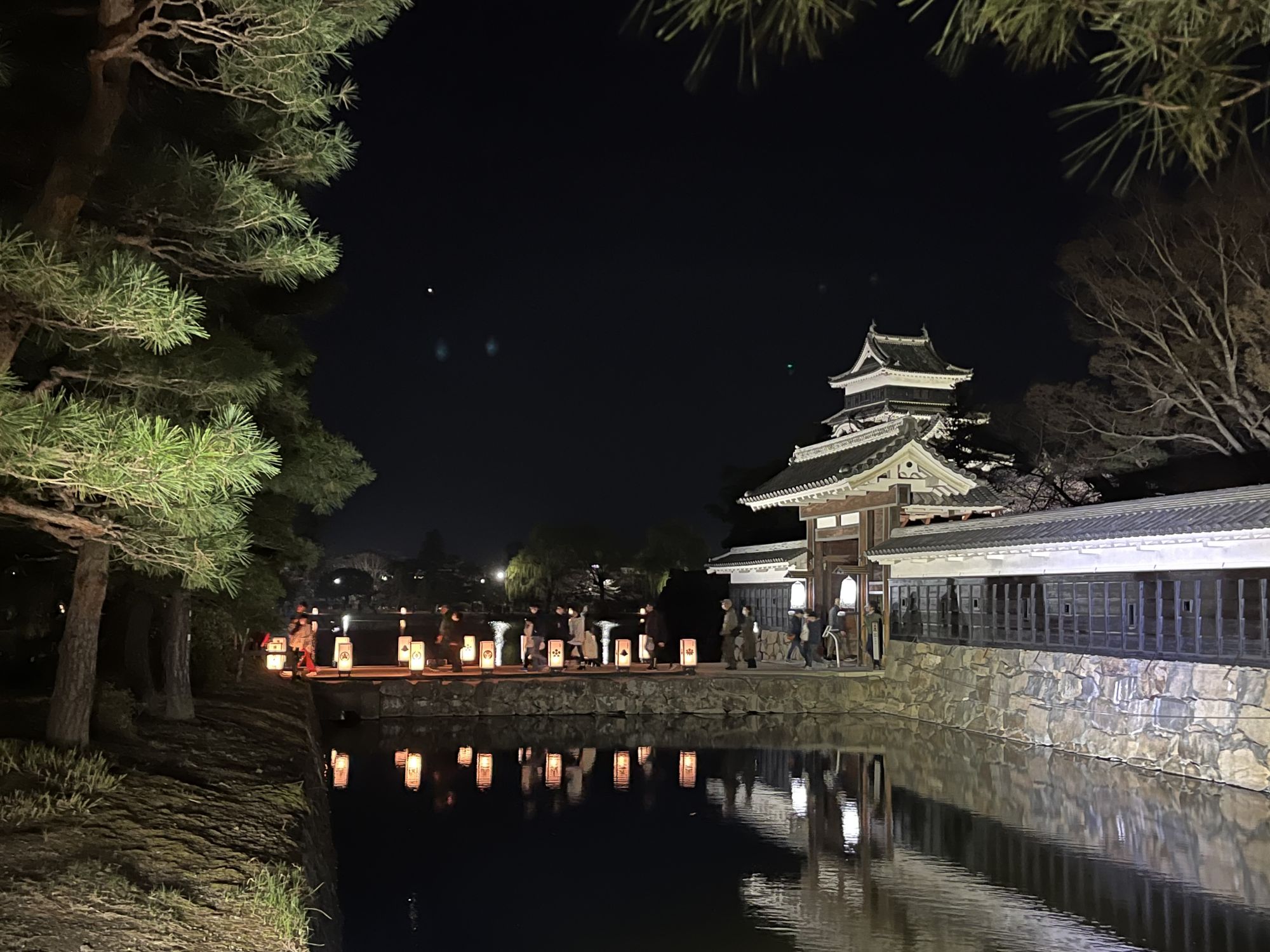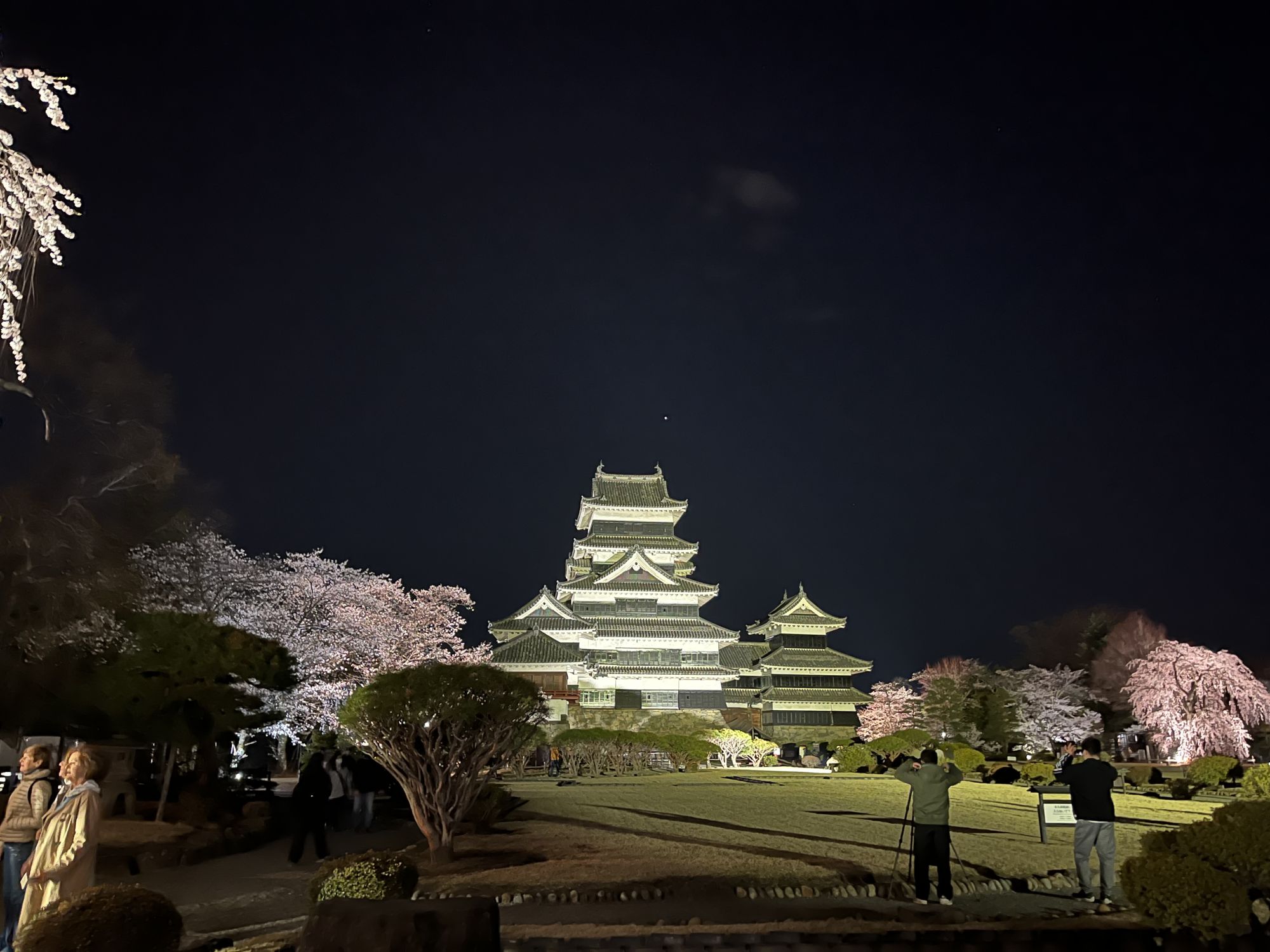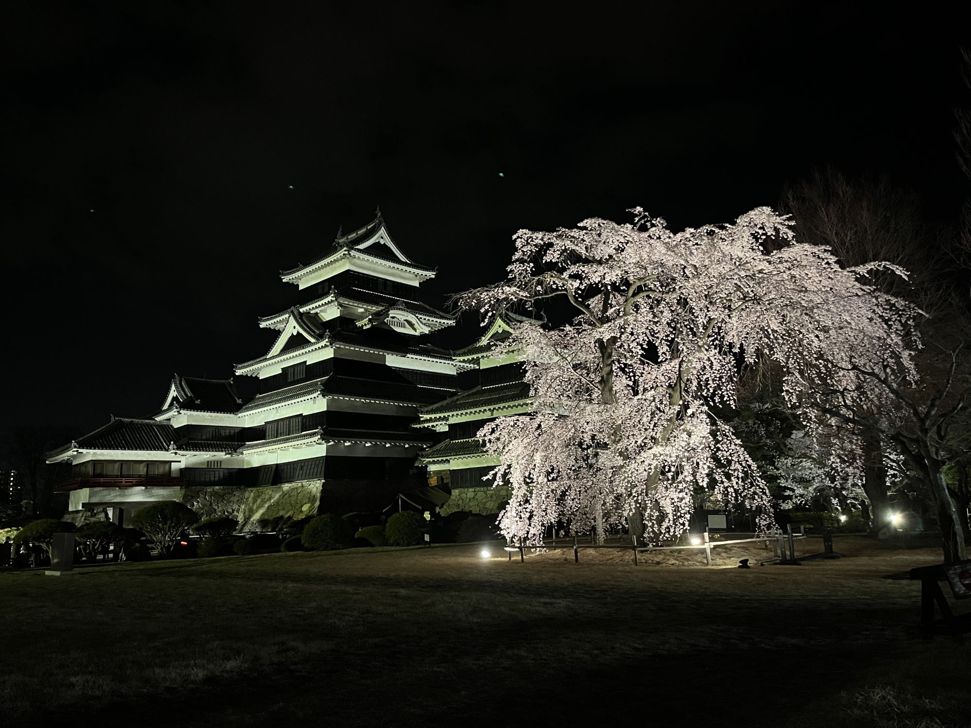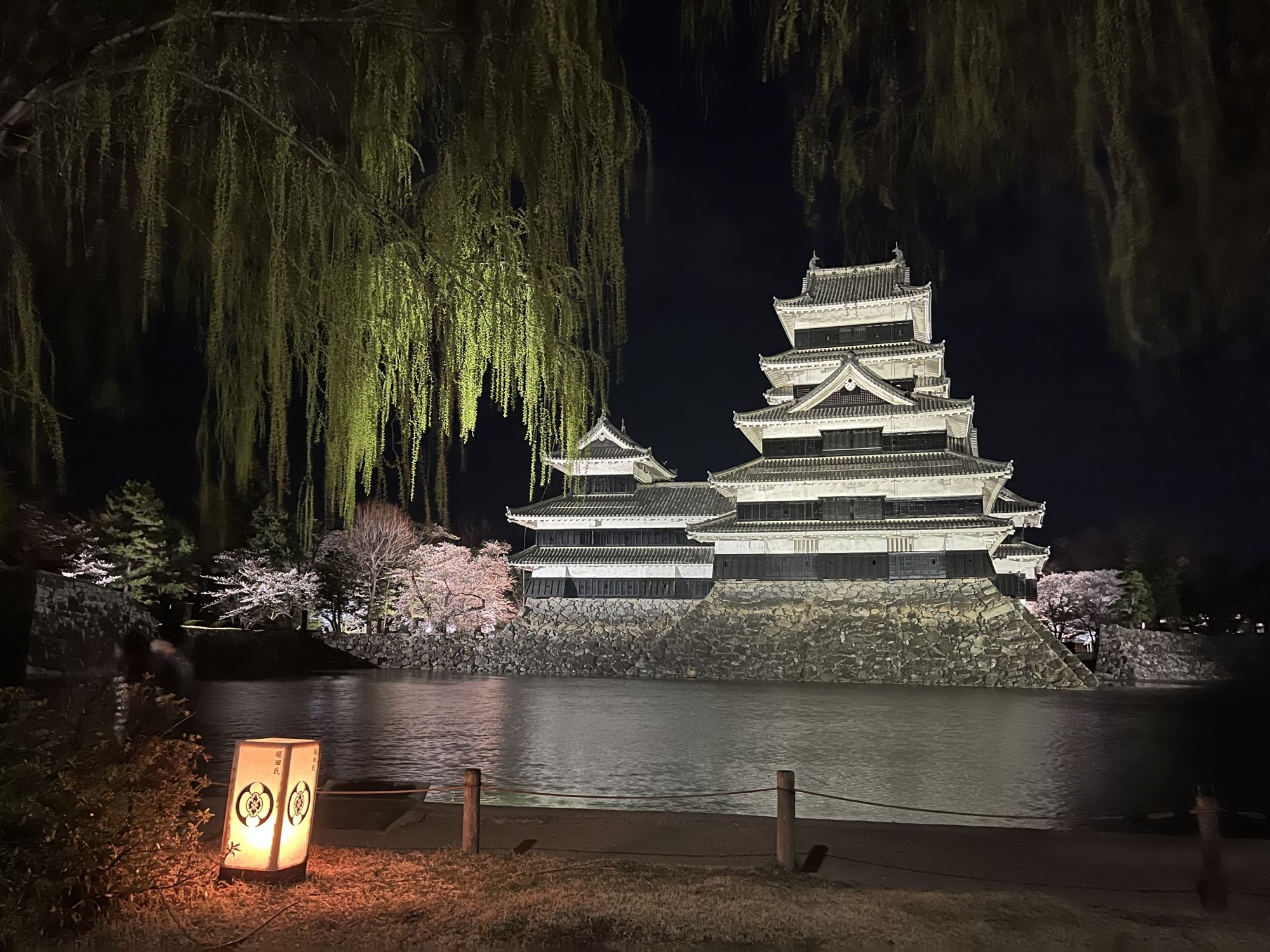 Pour cette occasion, chaque année le chateau de Matsumoto ouvre son jardin intérieur à partir de 16h30 et offre à ses visiteurs un spectacle de sakura tout en lumières. Ne ratez pas le clou du spectacle : le majestueux cerisier pleureur (shidarezakura) qui se dresse à la droite du château.