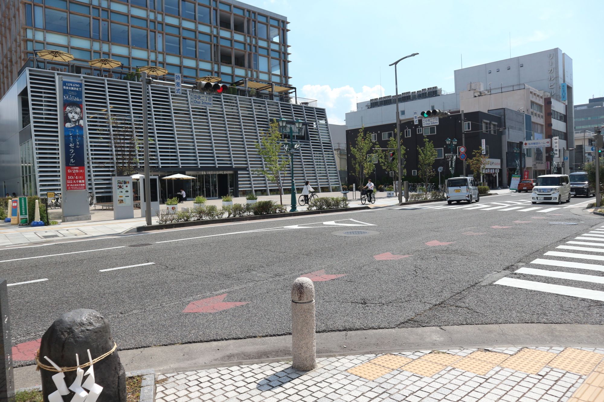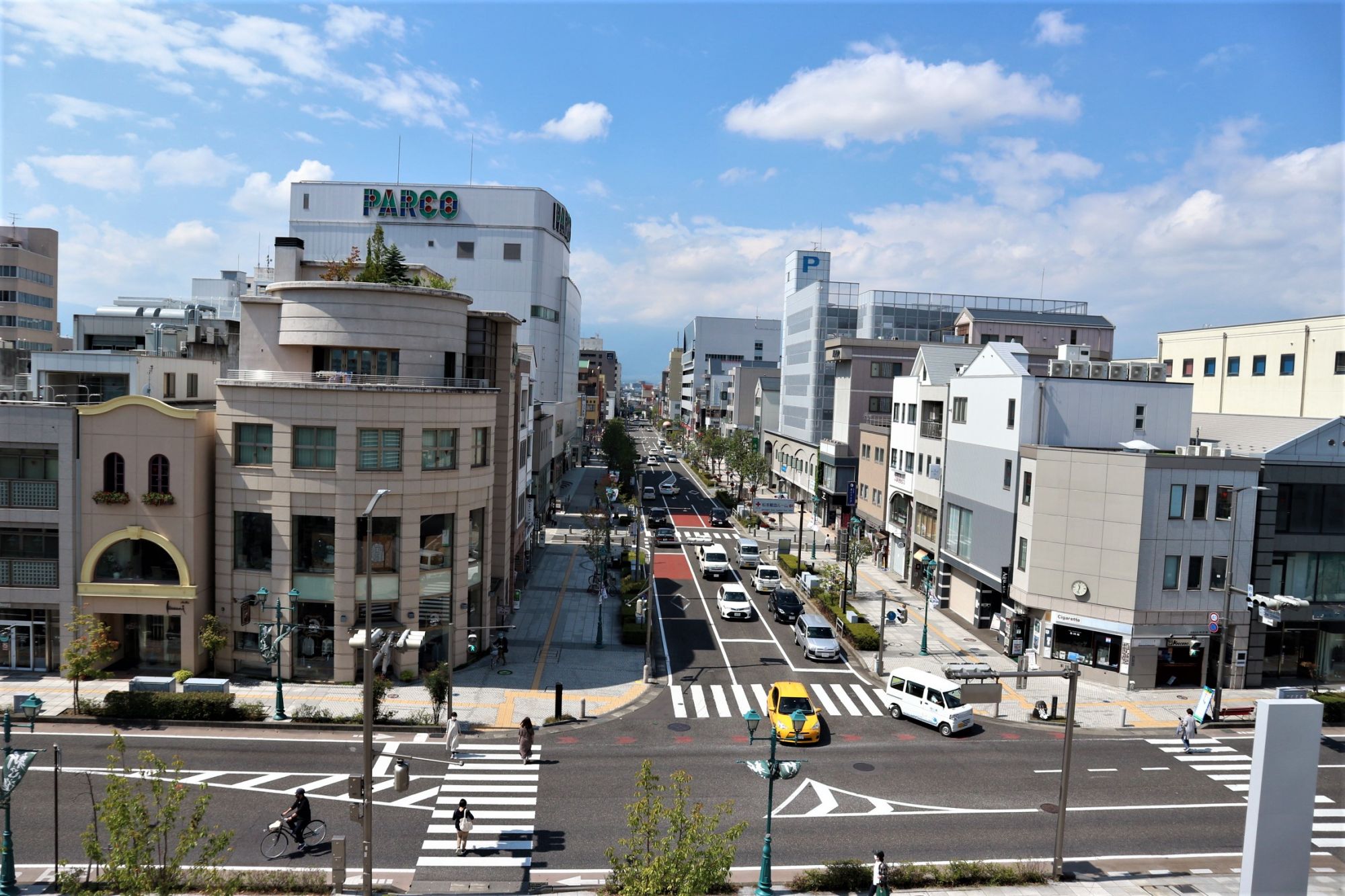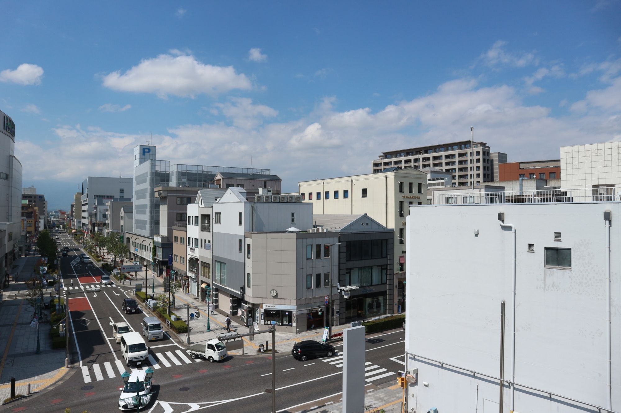野麦街道の始まりの伊勢町通り 信毎メディアガーデン3階テラスより撮影