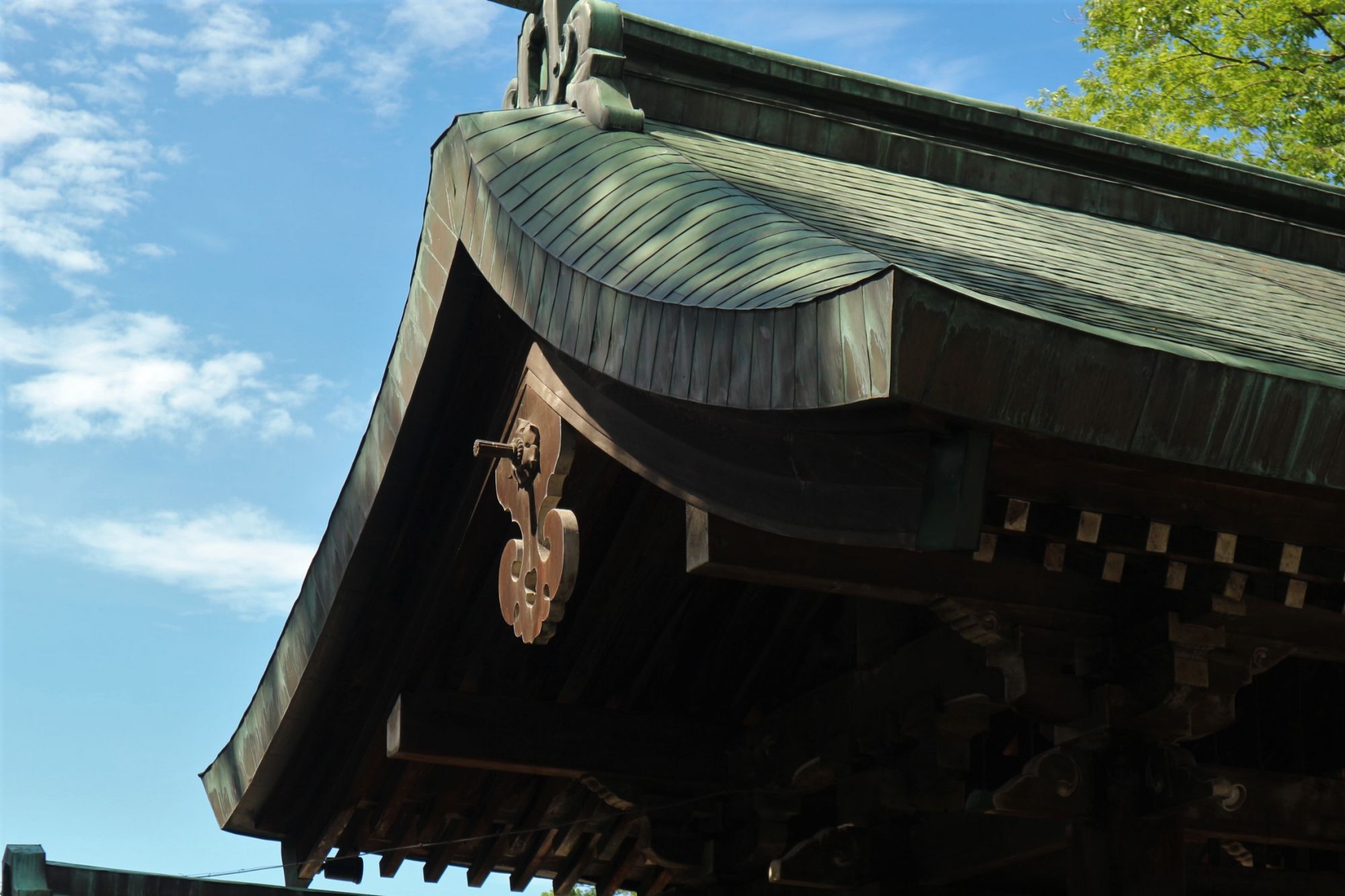 拝殿の後方は、森のように木が生い茂っています。
