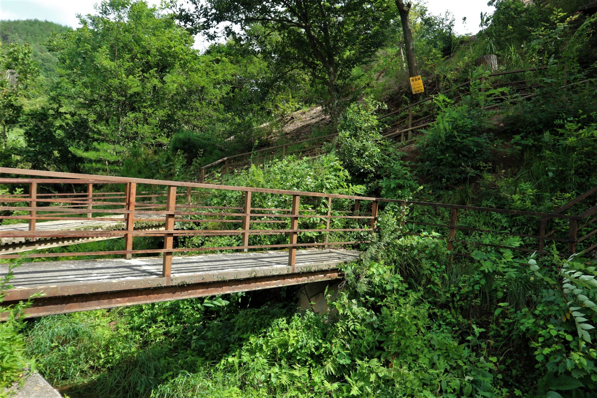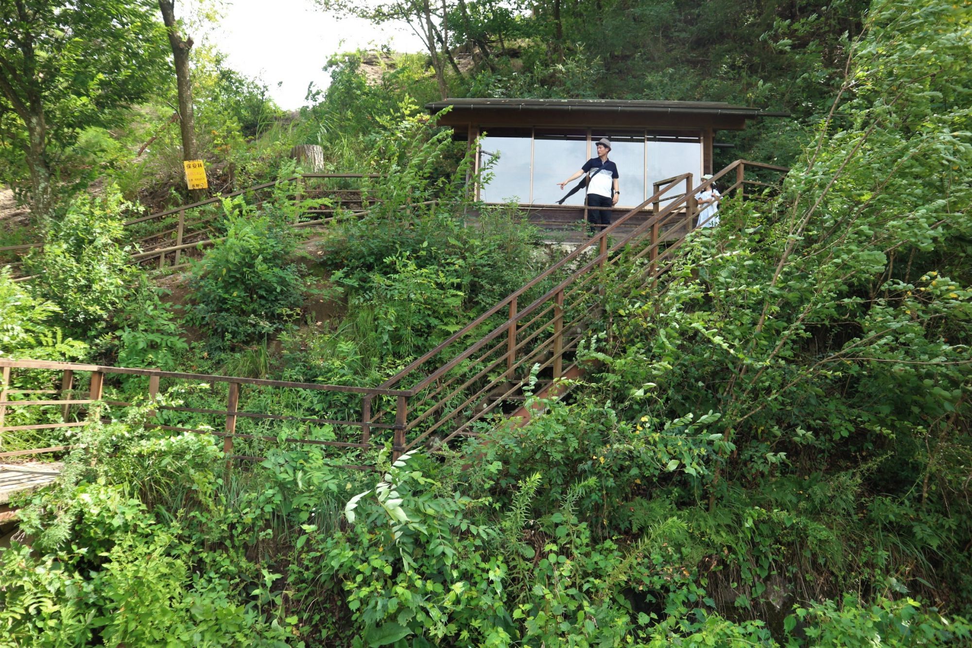 細い道を3~5分ほど歩くと斜面に階段が見えてきます。