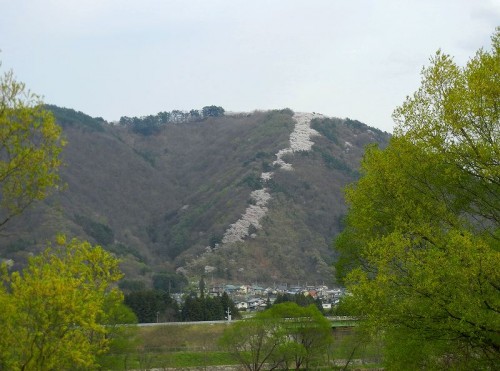 光城山(豊科)の遠景。ふもとからてっぺんまで桜の道ができました。