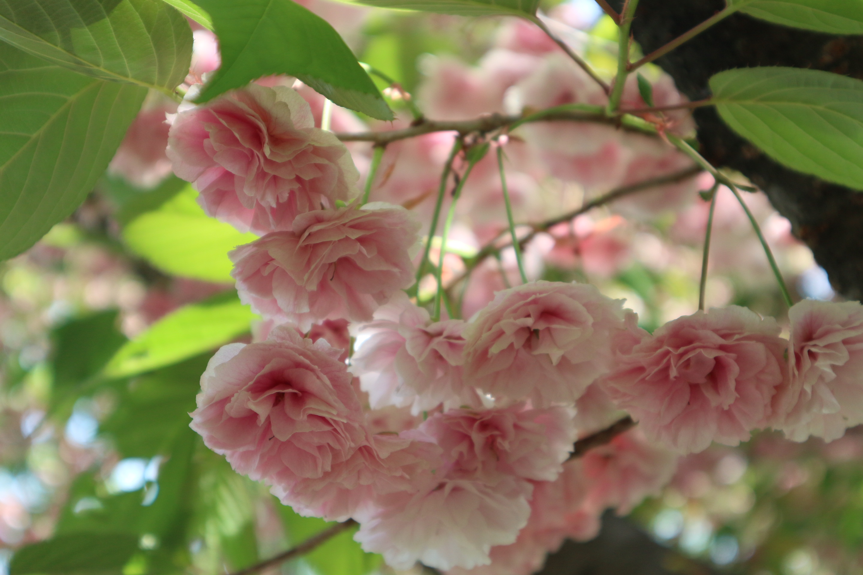 ピンクの花が可愛らしいアルプス公園のフゲンゾウ(八重咲きの花をつける桜の一種)