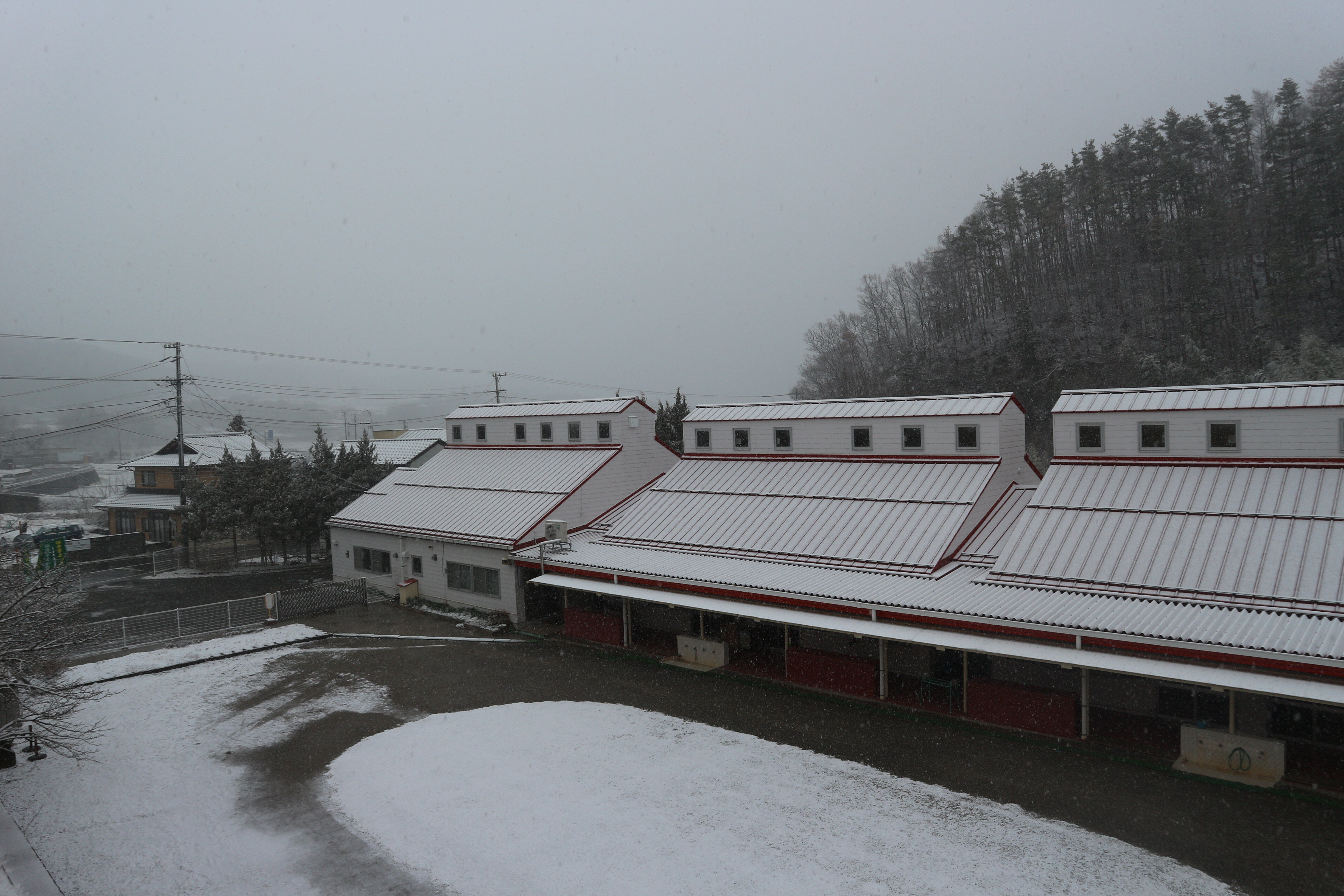 部屋の窓から来たアルプスを眺めるビューポイントになっています。取材日は生憎のお天気でした。