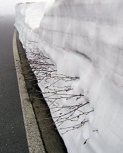 ここから車道を15分ほど歩いて下った所の急カーブが、雪の壁の最も高いところです。