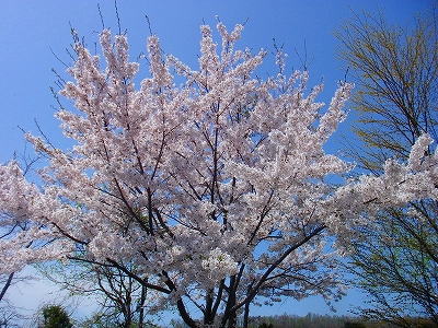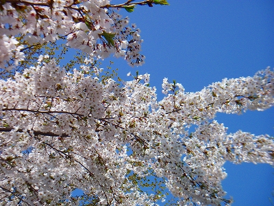 青空に、薄いピンク色の桜の花が映えて見えて、感動的に綺麗です!