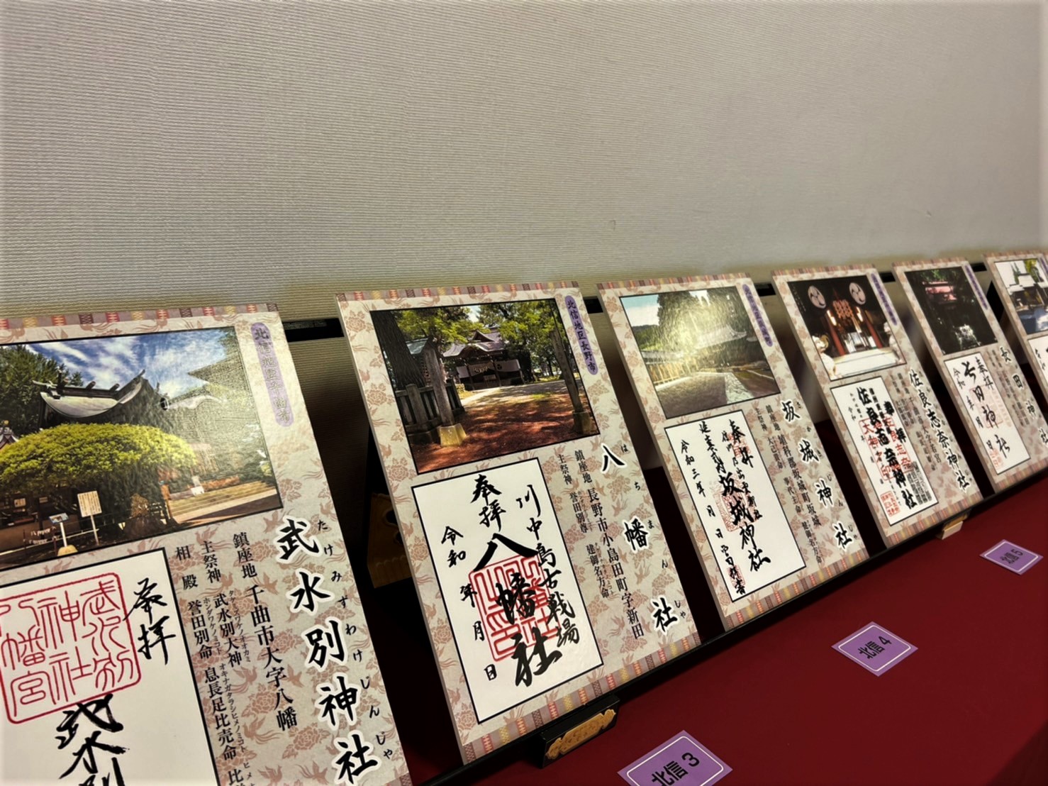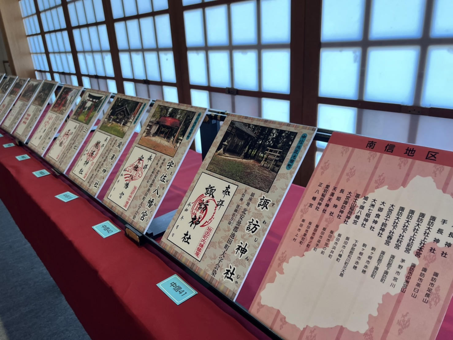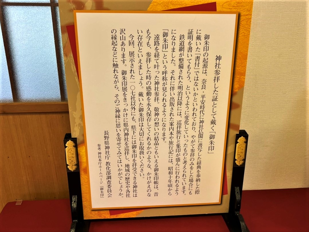 四柱神社斎館にて長野県内の神社の御朱印を集めた展示がおこなわれていました。最終日の11月8日来場しました。