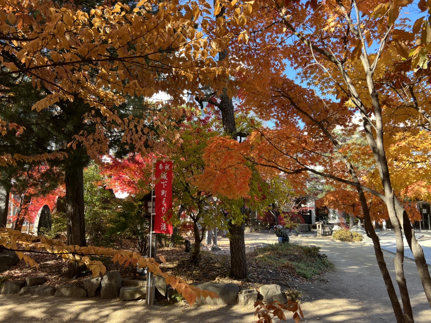四柱神社の境内の紅葉は見頃です。11月19・20日は、四柱神社恵比寿神社でえびす講が執り行われます。