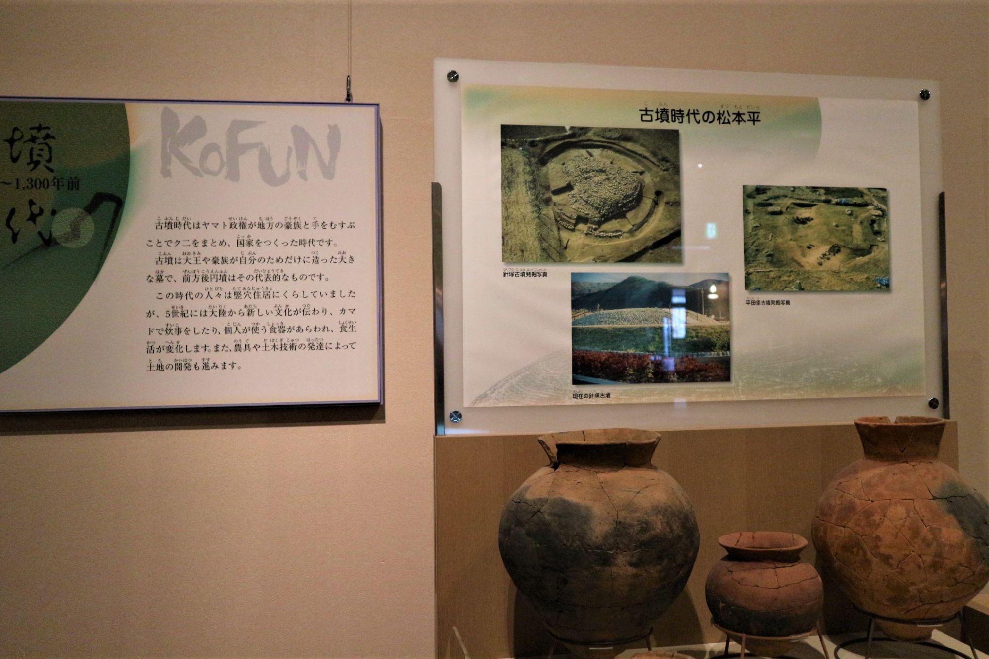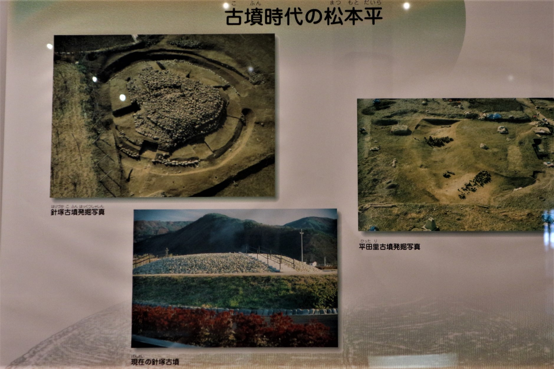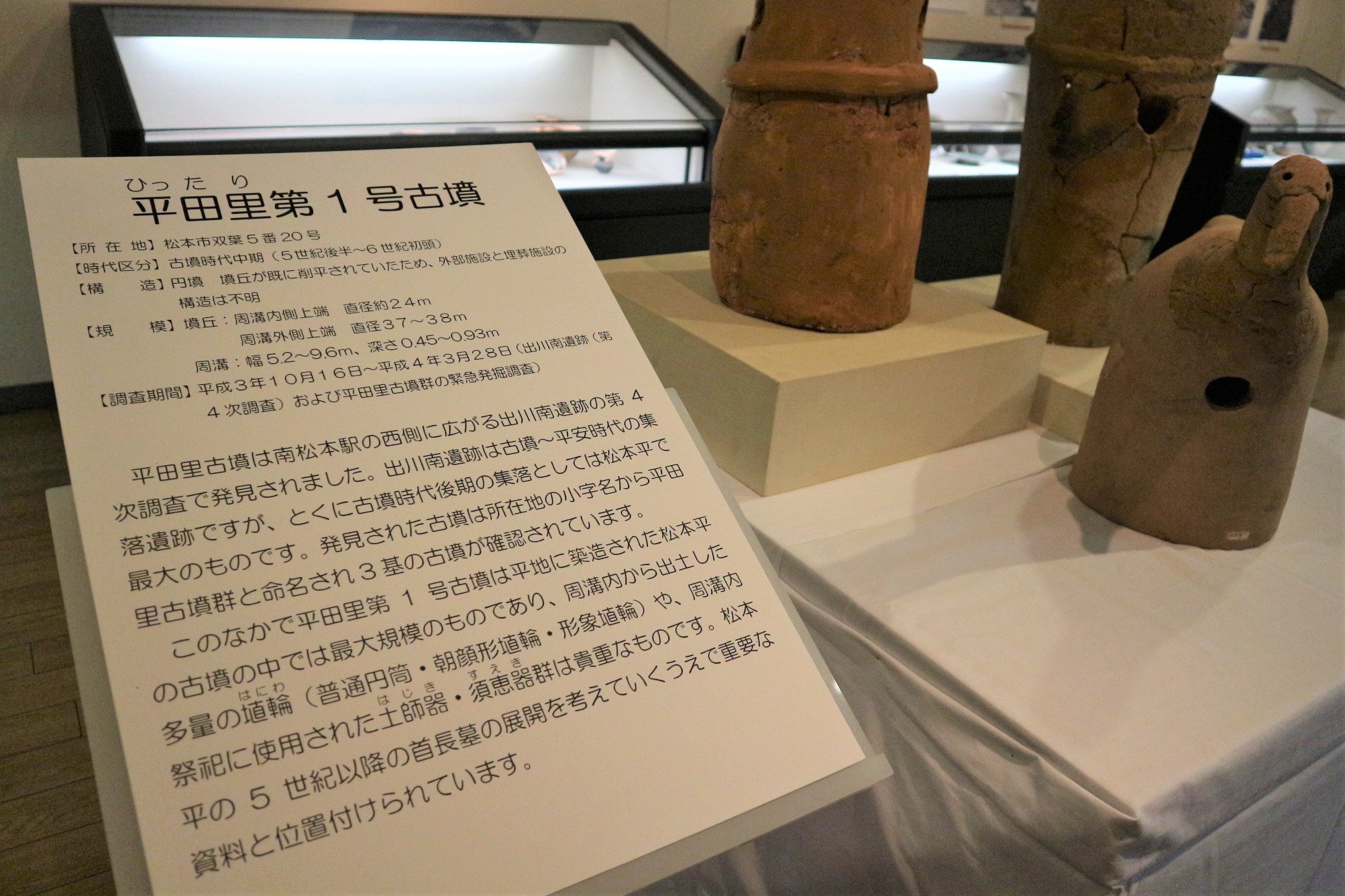 県内、松本市域の古墳時代の状況をパネル展示で紹介と常設展示以外の副葬品や出土品などが展示されています。
