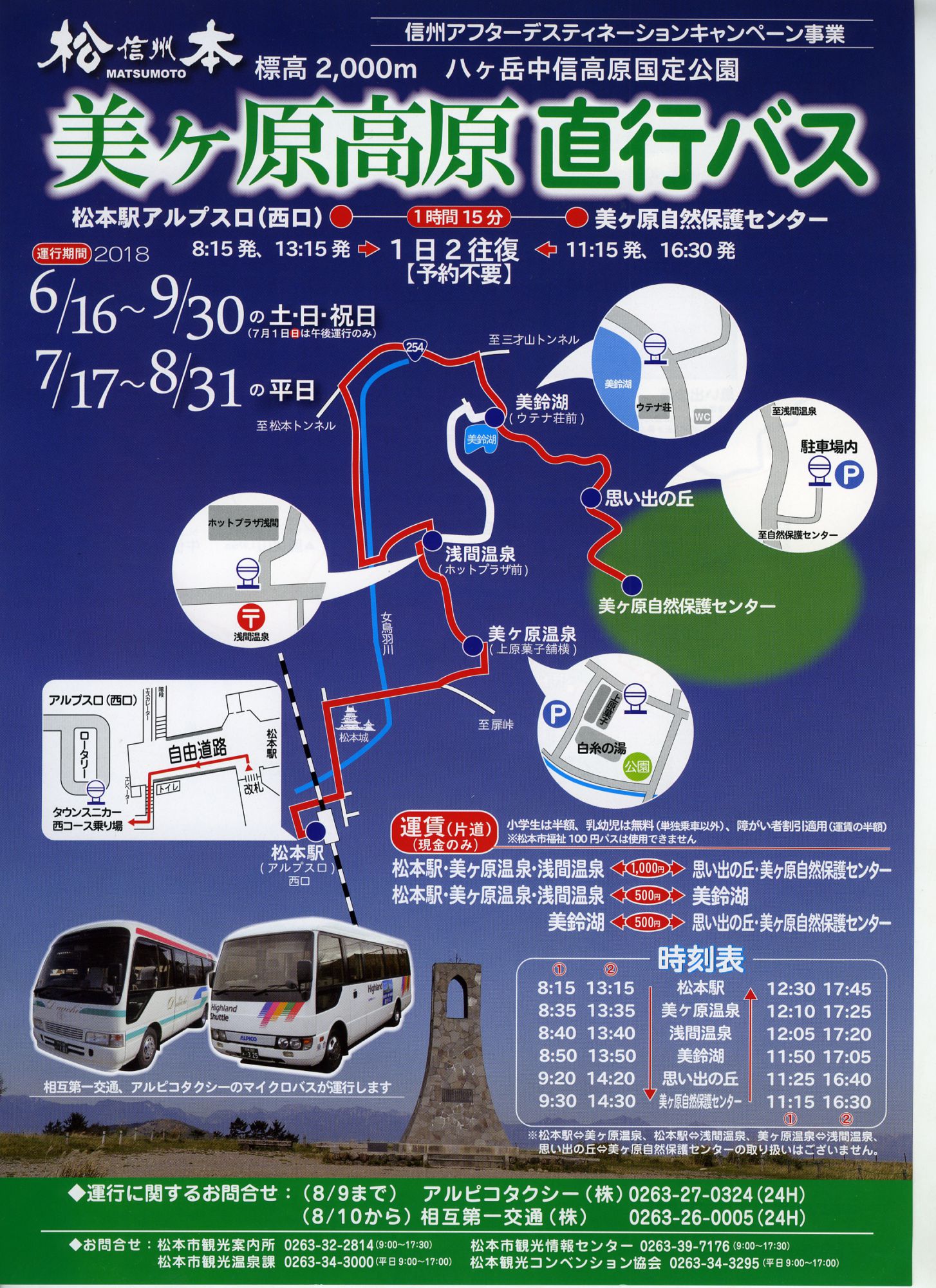 ※松本駅⇔美ヶ原温泉、松本駅⇔浅間温泉、美ヶ原温泉⇔浅間温泉、思い出の丘⇔美ヶ原自然保護セン