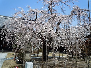 松本市里山辺の兎川寺の枝垂桜が見ごろです。