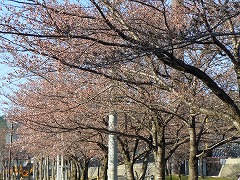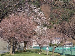 公園内は比較的若い桜が植えられています。ベンチなどもあり近所の人たちが散歩をしたり子どもたちが遊んでいます。