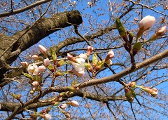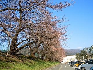 毎年見事な桜の花が見られる美須々駐車場の桜です。まだ2分咲きくらいです。西を向いて撮ると天気のいい日はアルプスが入ります。