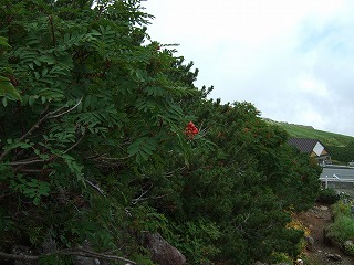 肩ノ小屋口の上のナナカマドも色付いていません。変ですね。
