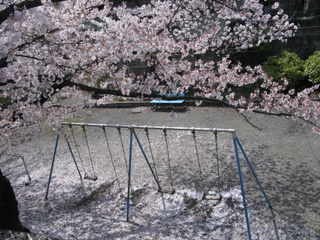北門大井戸公園の桜 こちらも満開 散った花びらがかわいい。
