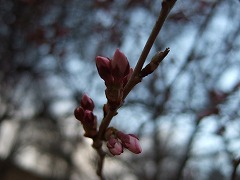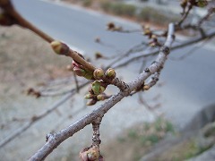 △南斜面のソメイヨシノつぼみ △南東斜面のソメイヨシノの枝