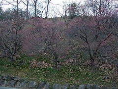 △南斜面のヒガンザクラ △ヒガンザクラのつぼみ
