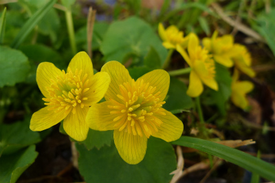 「水芭蕉」と同じく水辺が好きな「リュウキンカ」。