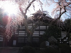 境内の本堂隣のシダレザクラはまだつぼみがありました。