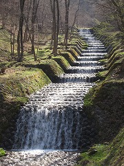 牛伏寺近くのフランス式階段工の周辺のヤマザクラは、2~3週間後に咲くと周辺の整備をしている方が教えてくれました。ダムのすぐ脇は、ニセアカシアです。