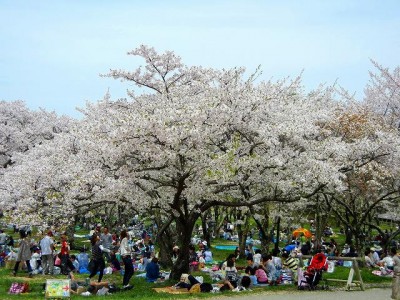 今日のアルプス公園は 天気がいいことも手伝って 多くの家族連れでにぎわっています。桜は満開!!桜の下には所狭しとブルーシートが並びます。