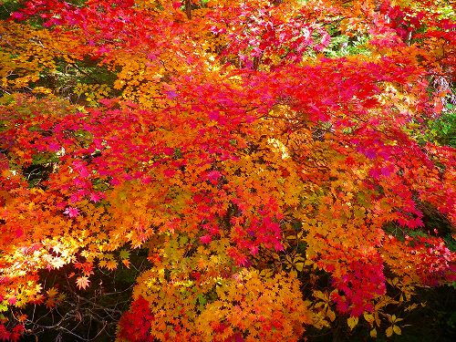 この樹も緑~黄緑~黄色~オレンジ~ピンク~赤と無限の色合いを魅せてくれて、またオオカエデとは違いますが、とても綺麗です。
