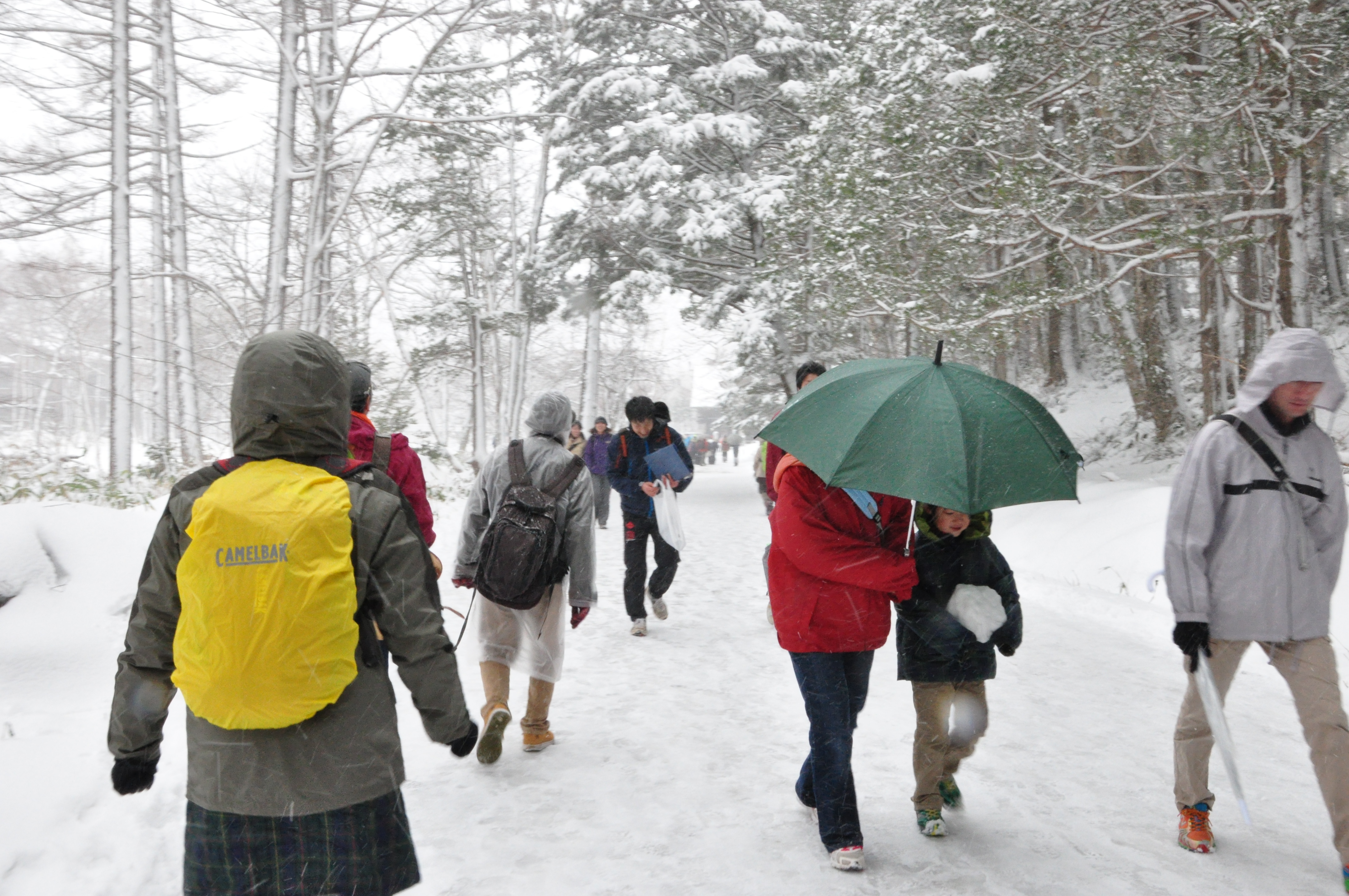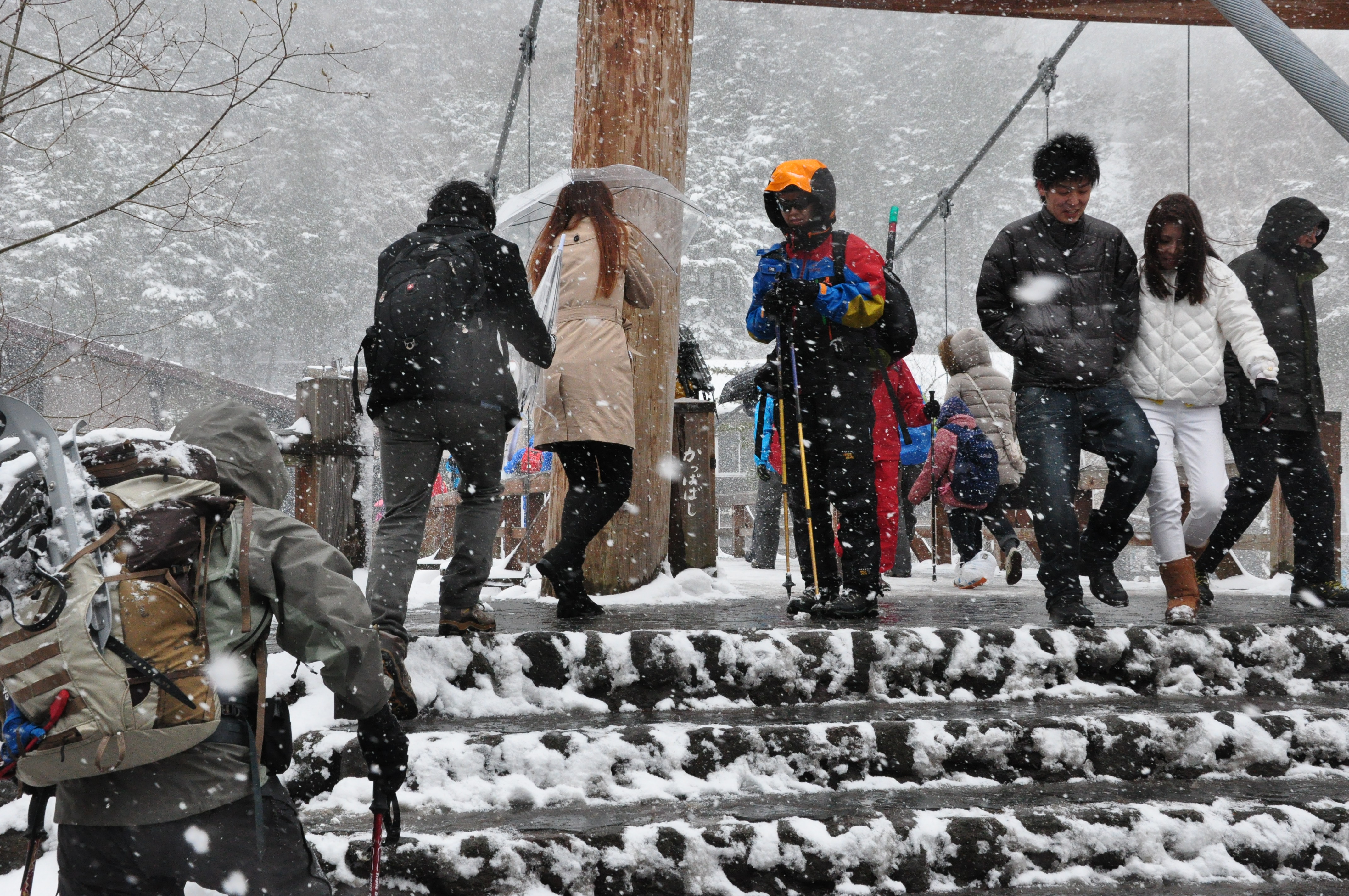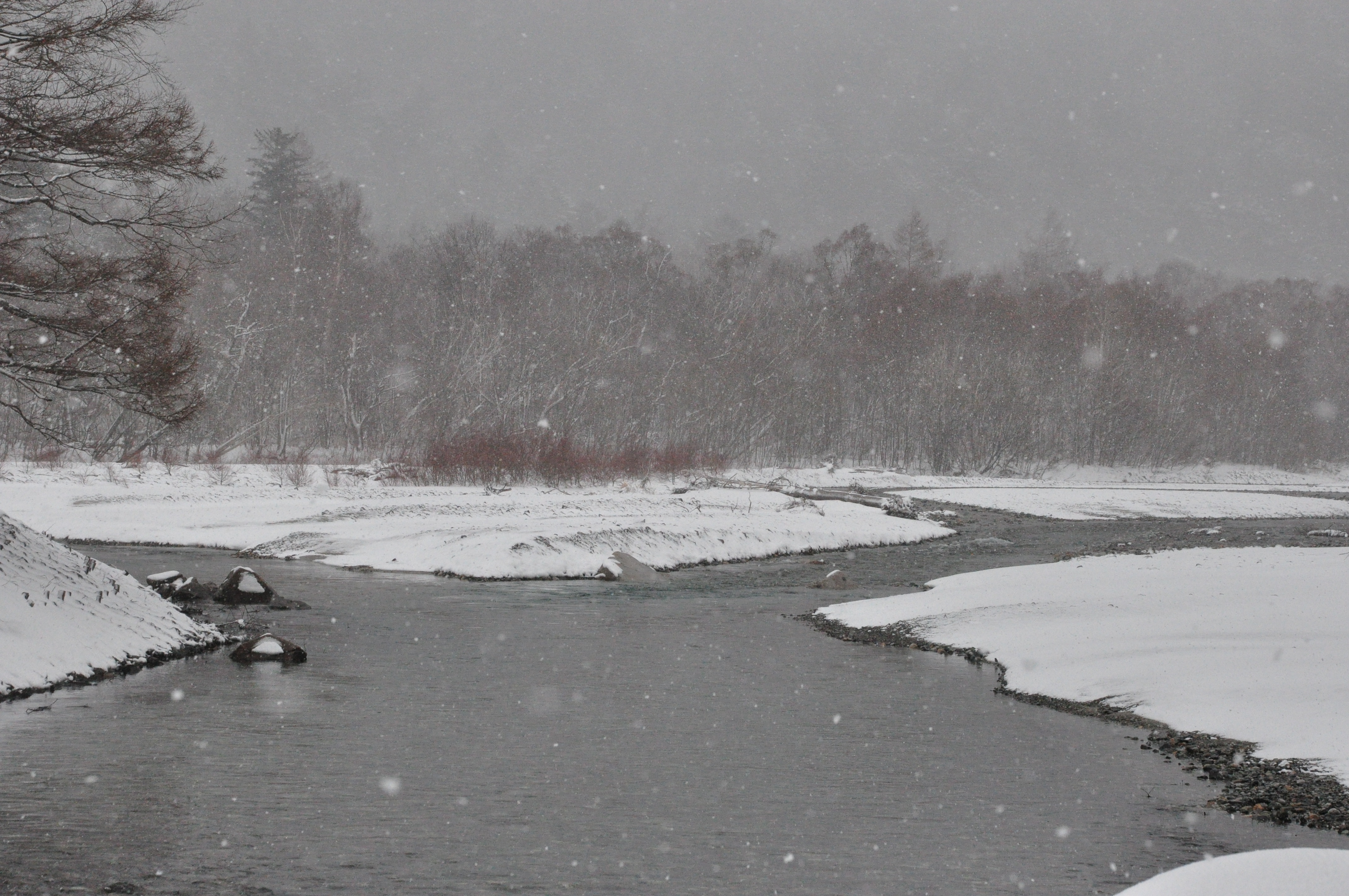 吹雪とはいえ、上高地に来たらやっぱりここまでは来たい。