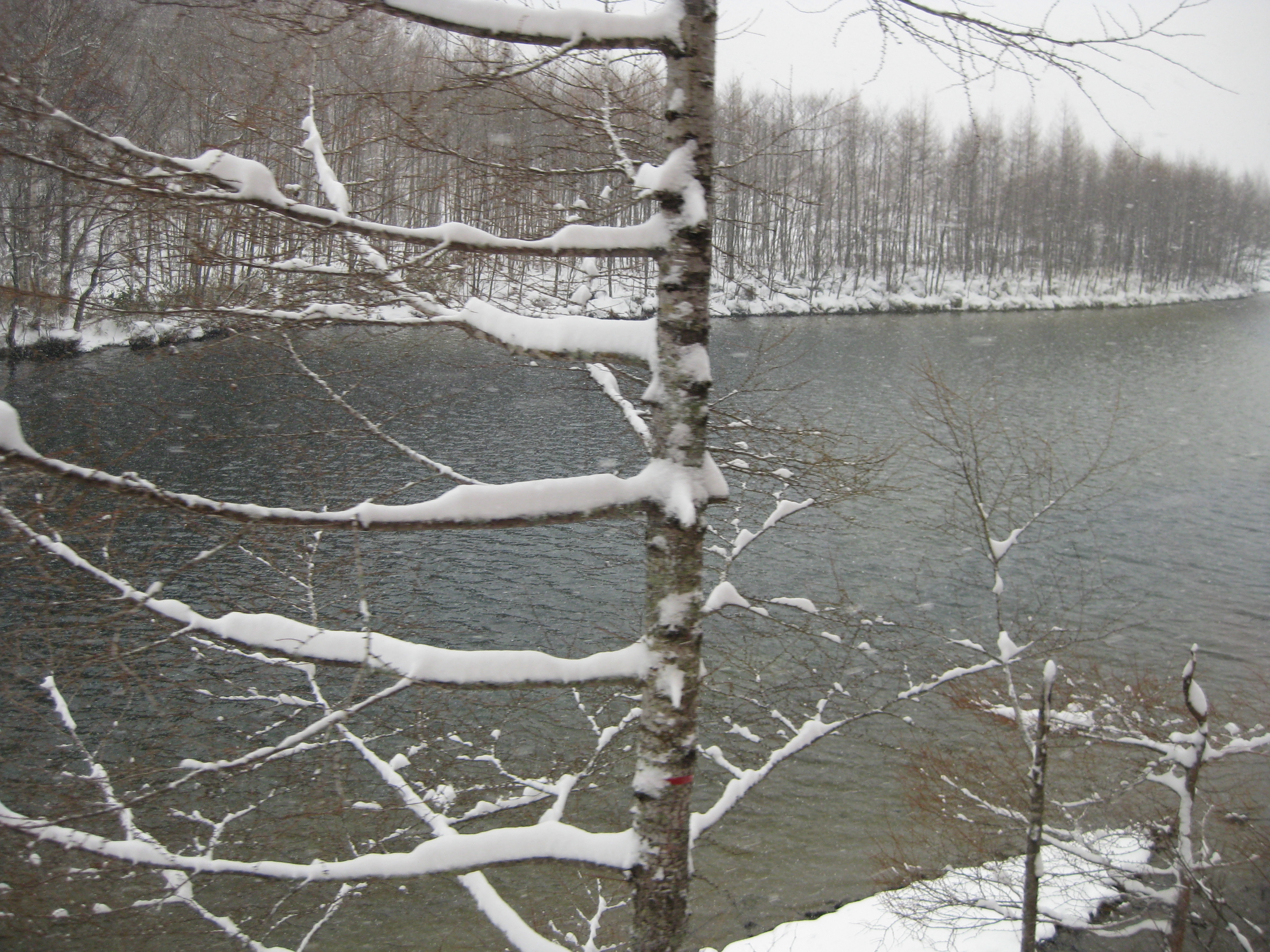雪景色を彩どる化粧柳の淡い赤色が美しかったです。