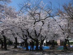 桜の木の下には、ブルーシートが引きつめられていました。