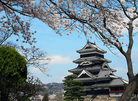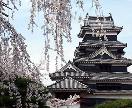 松本城の桜も見頃です。