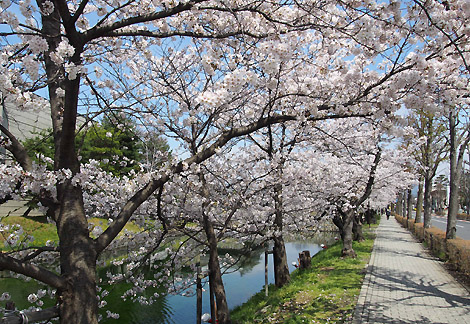 お城東側のお堀沿いの桜も見事です。比較的人通りが少ないので穴場です。