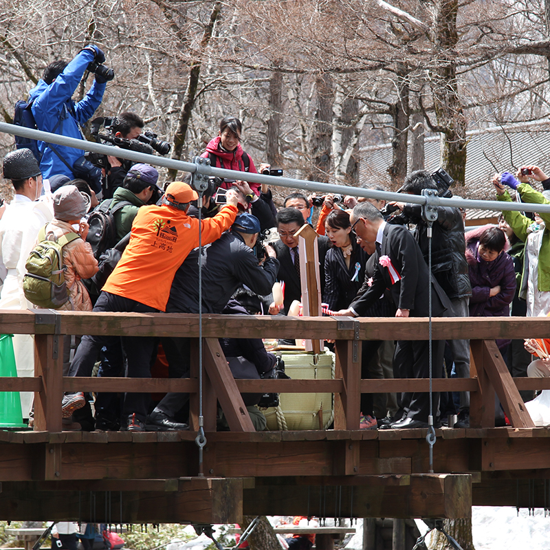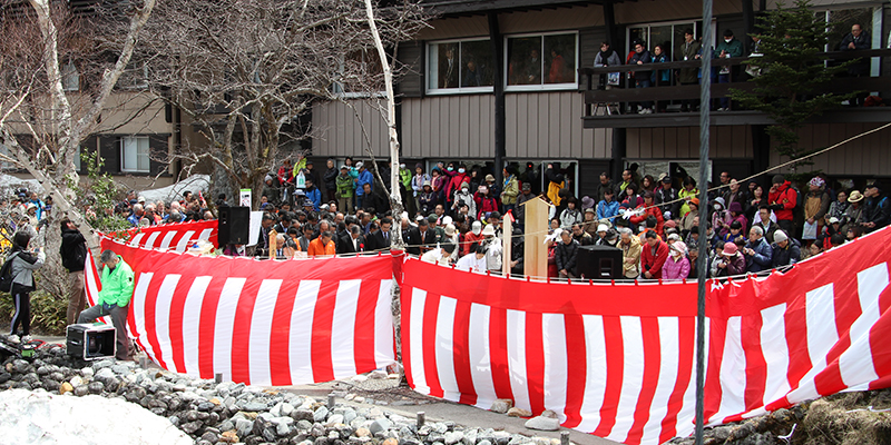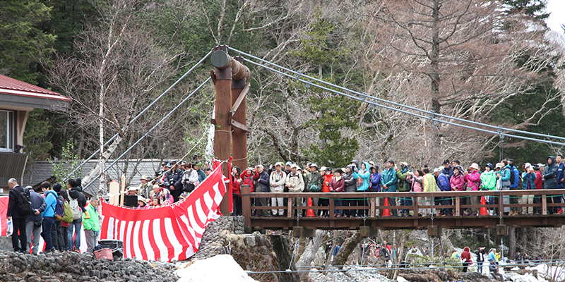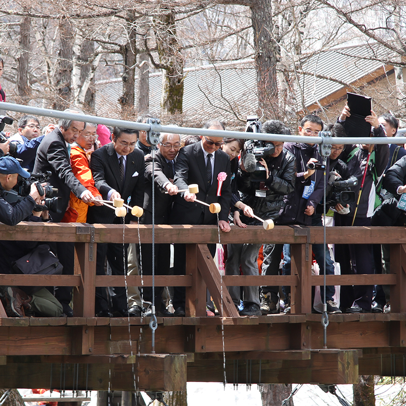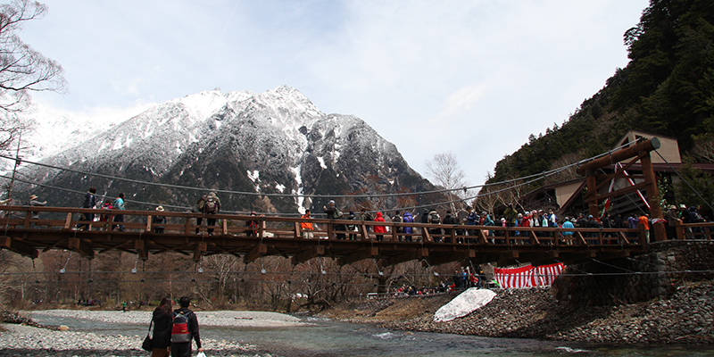 平成29年4月27日。北アルプスへの玄関口のひとつ、上高地河童橋たもとにて、第49回上高地開山祭が行われました。