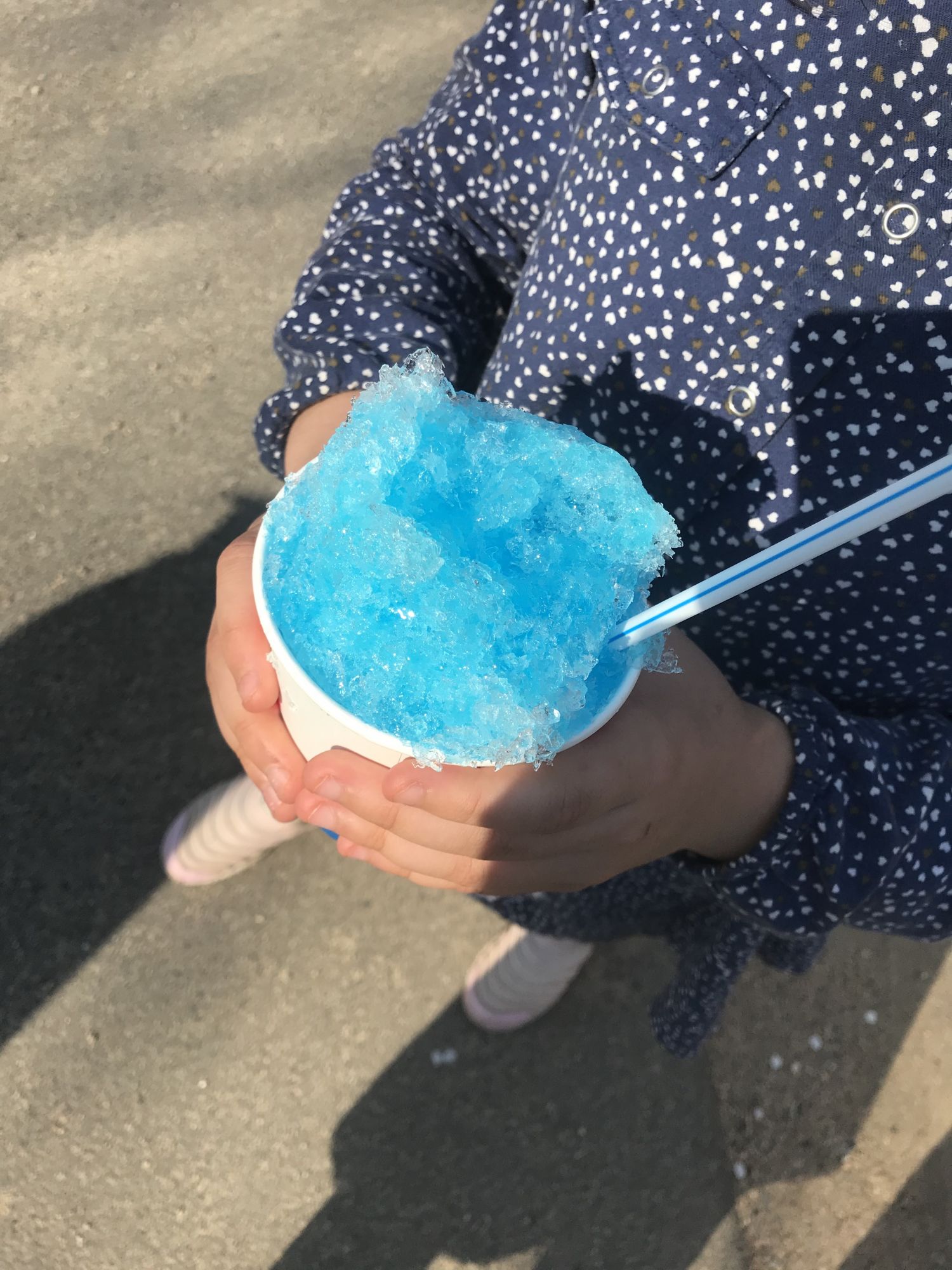 Сироп для льда можно выбрать на свой вкус — клубничный, яблочный, виноградный или же загадочный «гавайский голубой», на котором мы и остановили свой выбор. Оказалось, это вкус сладкой содовой с красителем.