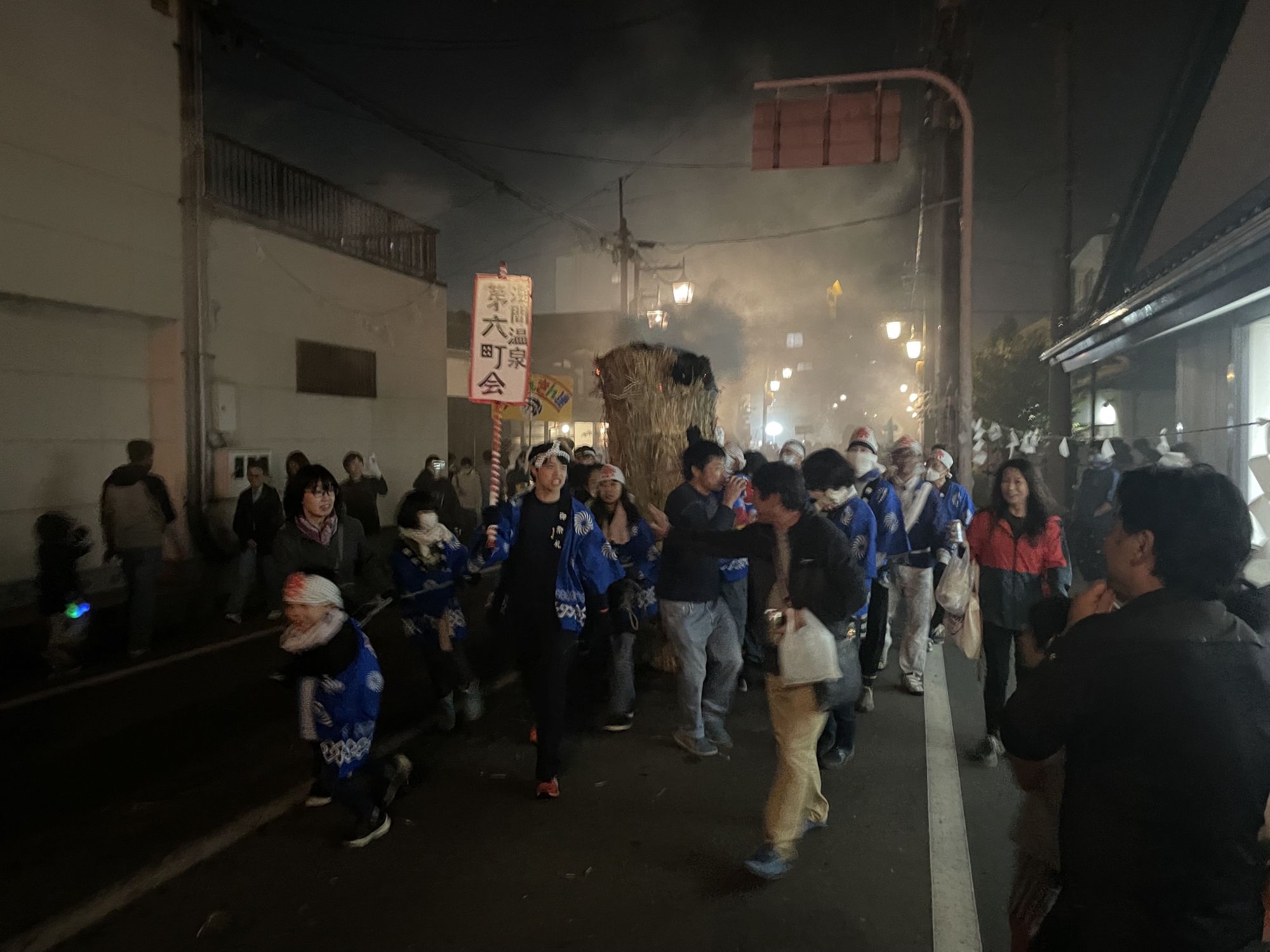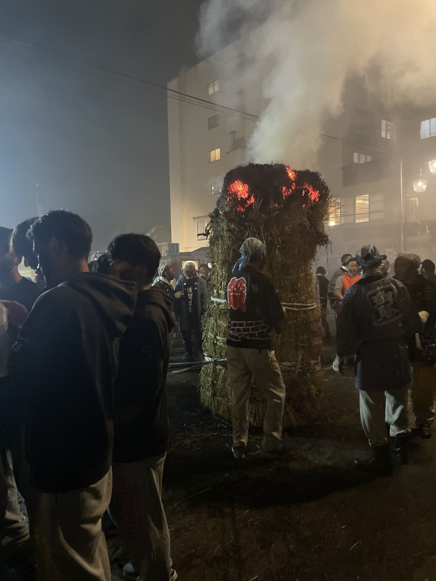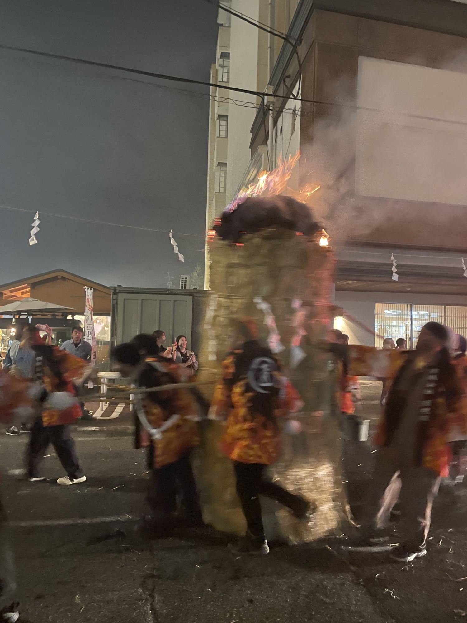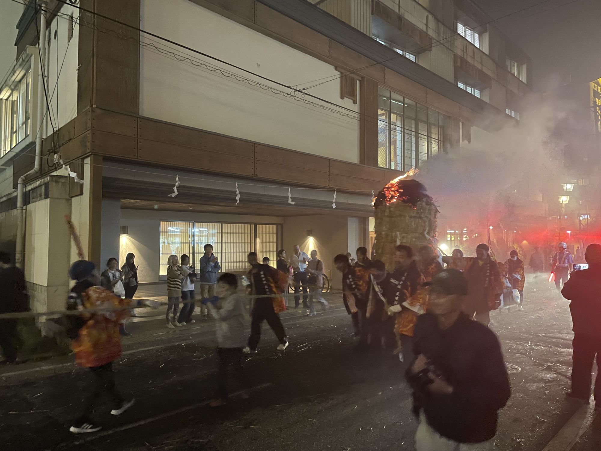 Шествие в сопровождении освященных факелов, зажженных местными жителями, которые проносят или вернее сказать протаскивают по улицам Асама Онсен.